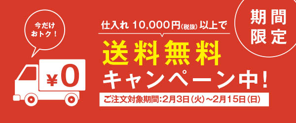 - 2月15日まで仕入れ価格10,000円(税抜)以上で送料無料です。この機会に是非ご利用ください