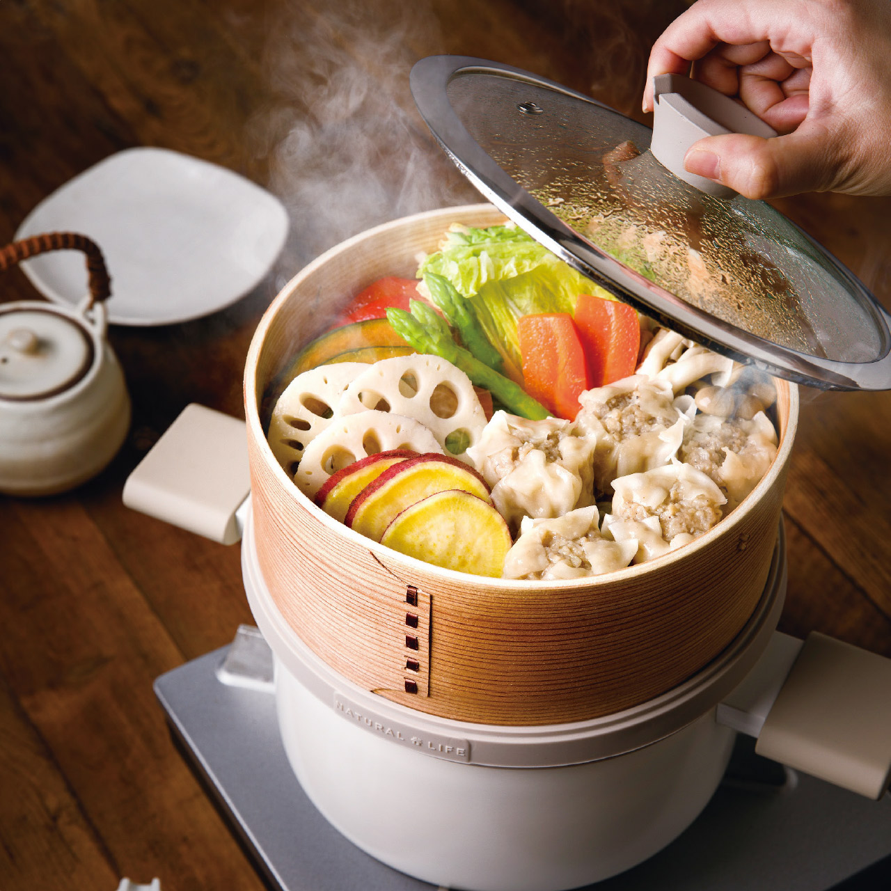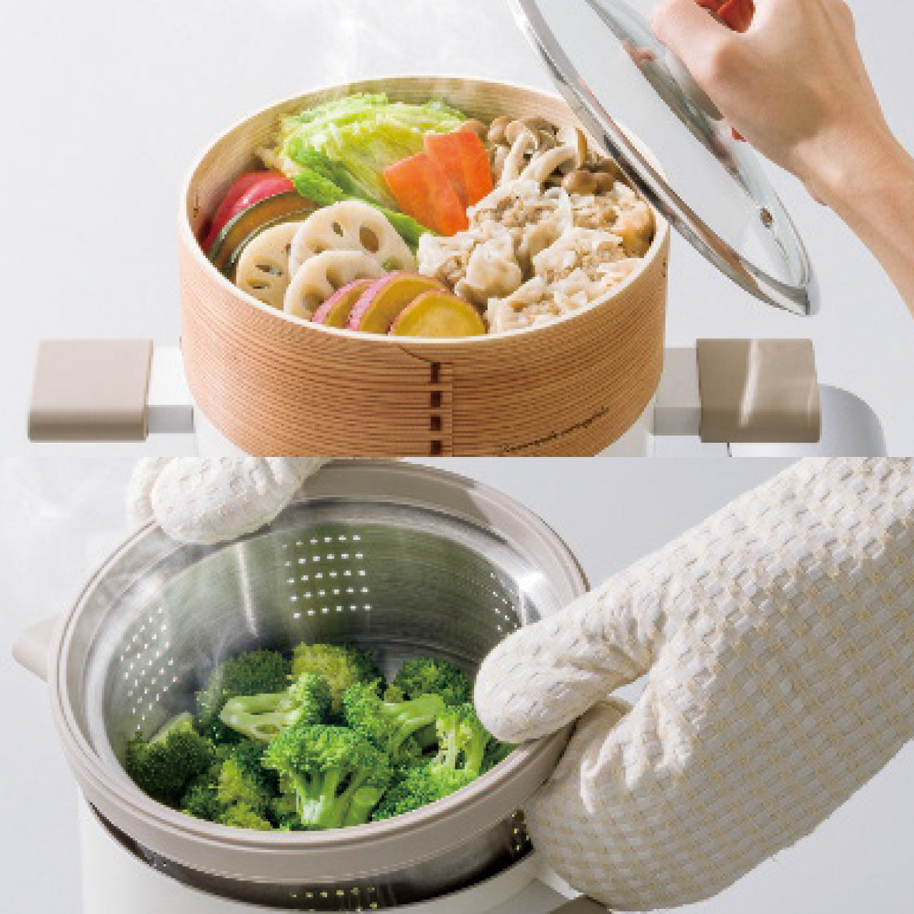 蒸す、揚げる、炒める、煮る、焼くなどマルチに活躍。セイロを使えば、ヘルシーな蒸し料理も。ストレーナーは水切りや油切りとして。