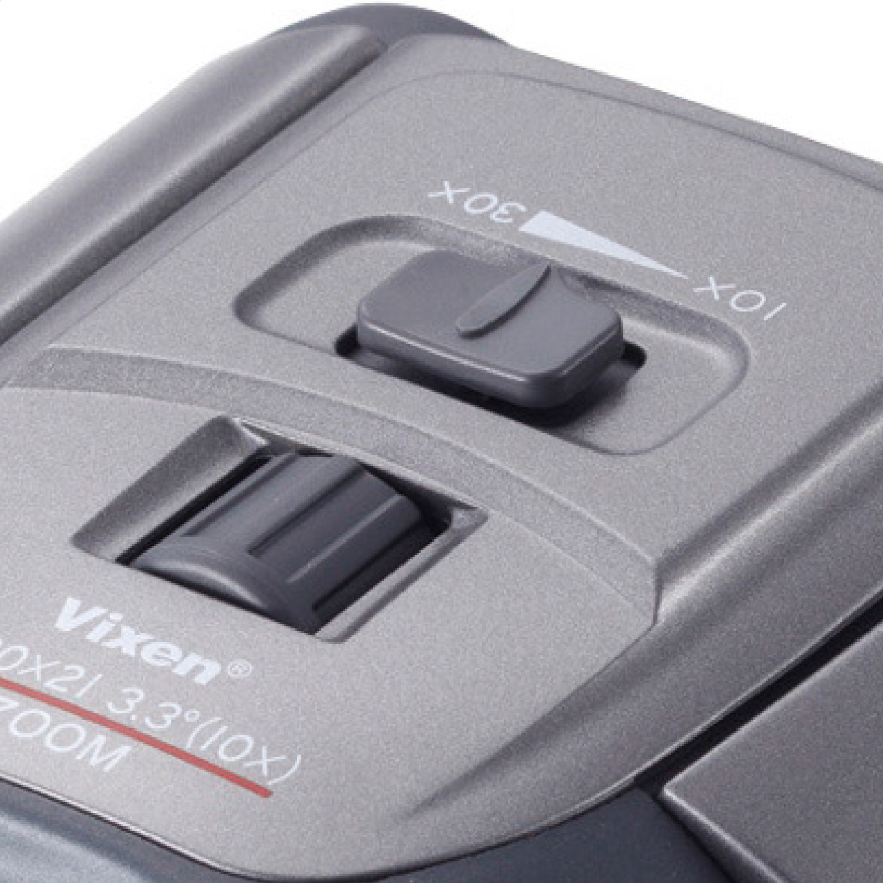 10~30倍までの好きな倍率で観察できる双眼鏡です。横幅約10cmとコンパクトな設計。レンズ面に光の反射を抑える3層コーティングを施し、高倍率でも像が崩れにくく、ストレスが少なく観察することができます。また、付属の三脚アダプターを使えば三脚への取付も可能。手振れの心配が不要になります。