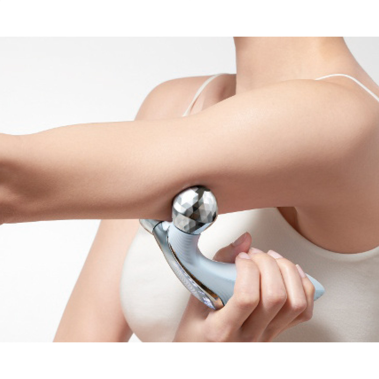 ・感性まで高めるデザインフォルム美しい流線を描くLED、手や肌にしっくりと馴染むエレガントなフォルム、肌へのなめらかなタッチが続くクロムメッキを採用。使うほどに感性が磨かれるような佇まいです。・敏感な肌にも安心のソフトスタートはじめてのEMSでも安心。突然の刺激に肌が驚かないよう、EMSの波形を調整しました。肌に当てた瞬間から、少しずつゆるやかにEMSの刺激が始まっていきます。・ポータブル設計でいつも傍に3時間でフル充電、約70分使用可能。外出先や旅行先でも安心してケアできます。充電は軽量なUSBケーブルを採用しています。・細かい設定で自分に合ったケアをサポート。<face/bodyモード>はそれぞれEMS刺激を5段階で設定でき、好みに合った強さでのケアが可能です。<skinモード>はマイクロカレントを発生させながらローラーケアができます。
