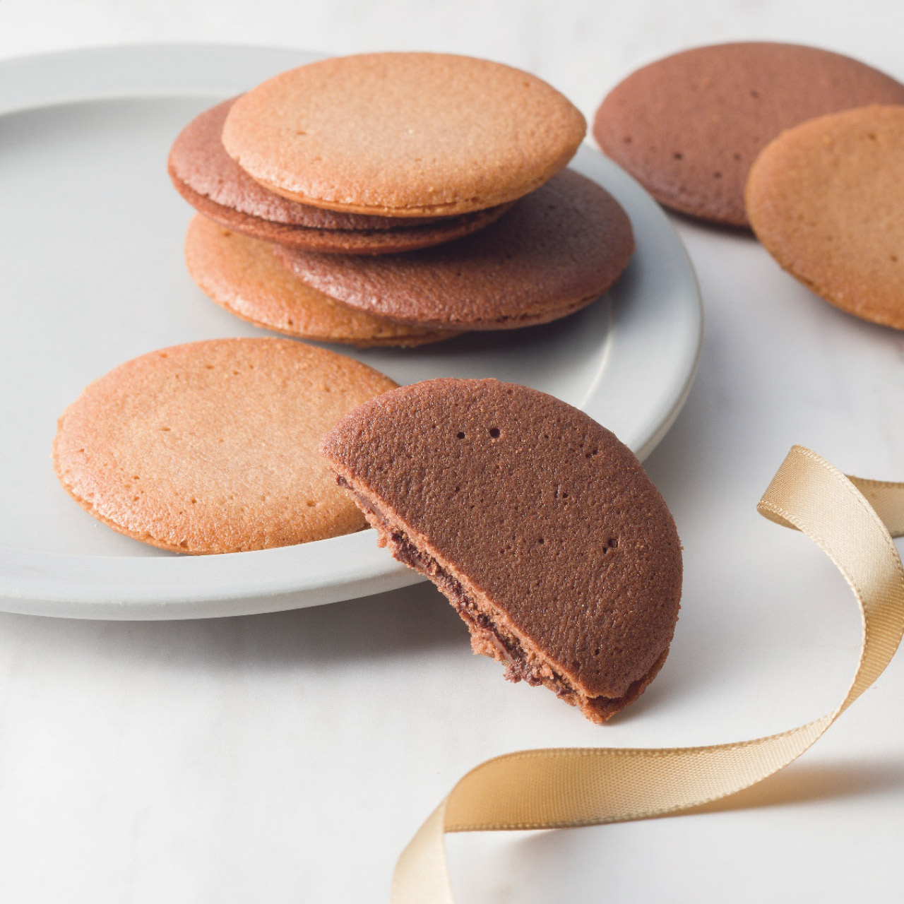 チョコレートの味わいを楽しんでいただくことを大切にしたクッキーのアソートメント。チョコレートを練りこんで軽やかに焼き上げたラングドシャでチョコレートをサンドしました。ミルクとダーク、2種類のチョコレートの味わいをお楽しみいただけます。カジュアルなギフトにピッタリです。