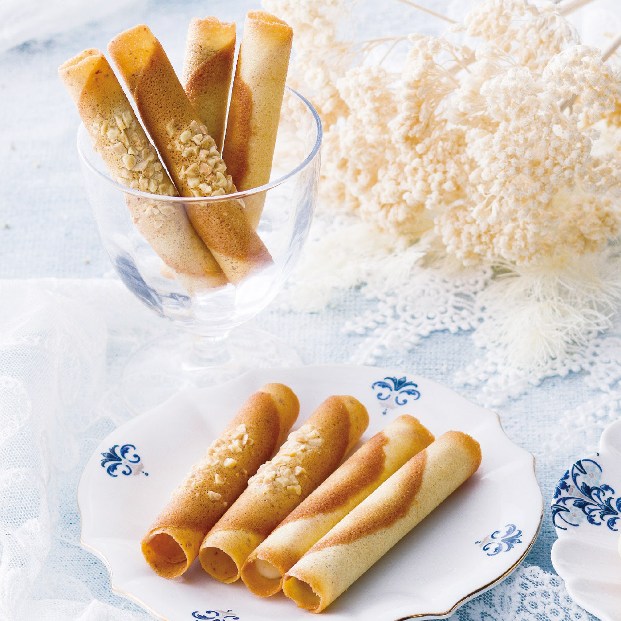 ~チョコレートをくるんだクッキー~アーモンド風味のチュイールと、バター風味のラングドシャ生地にアーモンドミルクチョコレートとホワイトチョコレートを流し込みました。
