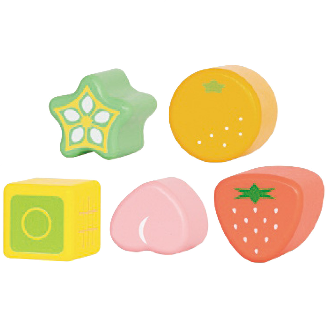 ■商品詳細 18.8×16.6×13cmボックス1個・音入りつみき(とうもろこし・おくら・オレンジ・モモ・イチゴ各1個)・プレート(トマト・さつまいも・パイナップル・パプリカ・キウイ各1個)・天然木、合板、ステンレス、ポリエステル、鉄・[中国製]