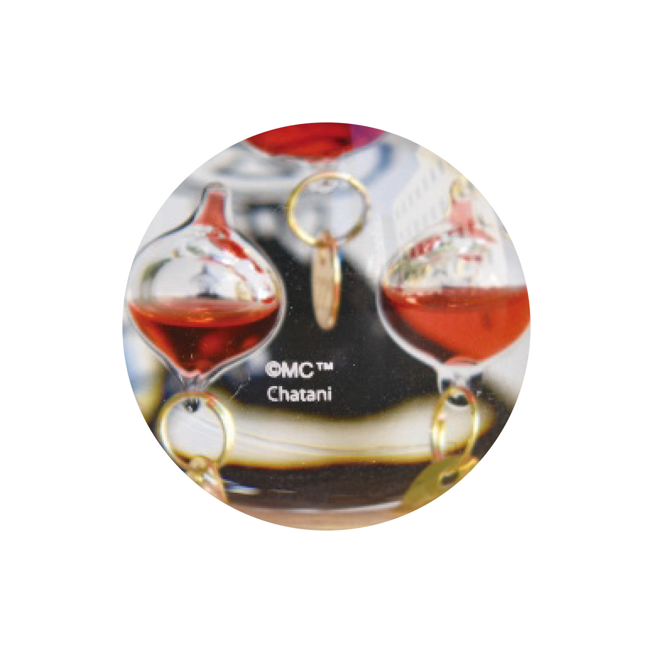 リトルミイのイメージカラーで揃えた赤いガラス球が、お部屋のアクセントに♪2度刻みで刻印されたゴールドのプレートが現在の温度を示します。ガラスの透明感がインテリアに馴染みやすく、どこか涼し気な印象を与えてくれます。物理学者のガリレオ・ガリレイが発見した「液体の比重が気温によって変化する」原理を用いて作られた温度計です。ガリレオ温度計とも呼ばれ、実際の基本は上層部に浮いているガラス球体についたプレートで読み取ります。正確な温度を測る為にはお使い頂けませんが、インテリアオブジェとして球体の浮き沈みや季節での変化を楽しむ事ができます。手のひらに乗るほどのサイズ感は置き場所を選ばず、デスクや棚の空いたスペースなどを飾るのにぴったり◎