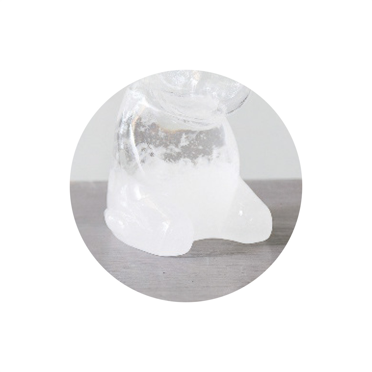 ストームグラスとは、気象や温度といった条件に応じて、ガラスの内部に様々な変化を見せてくれる、ユニークなインテリアオブジェです。ガラスで出来たムーミンの中に、天候によって変化する液体が入っています。曇りの日には濁った状態、嵐が近づくと大きな結晶が現れるなど、ガラス内に日々変化を見ることが出来ます。正確な天気予報にはお使い頂けませんが、インテリアとして結晶のユニークな変化をお楽しみください。暑い日には結晶が溶けて透明になってしまいますが、ムーミンのシルエットはガラスのオブジェとして置いておくだけでも◎涼しくなると再び結晶が現れ始めますので、季節の移ろいとともにお楽しみ頂けます。ムーミンのシルエットは勿論のこと、眉・目などお顔の細部まで、こだわりが沢山詰まっています!
