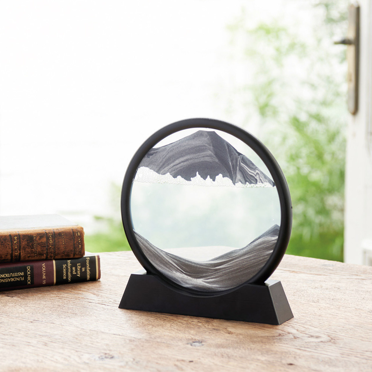 繊細な砂が流れ落ちる様子に魅了されるハイセンスなインテリア。砂時計のように上下逆さまにすることにより毎回異なる絵が出来上がります。色の異なる砂が不規則に落ちる様子や作り出す神秘的で美しい一期一会の情景をお楽しみいただけます。