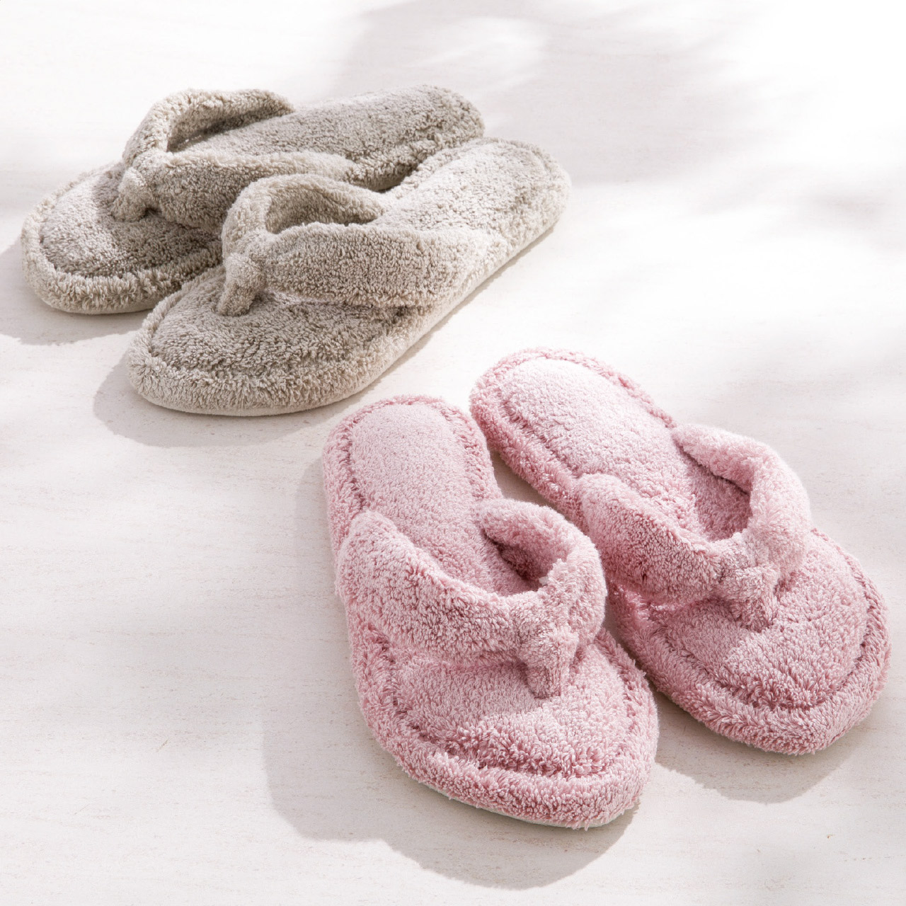 素足でいることの気持ち良さを教えてくれるのが、タオル地のスリッパです。吸水性にも優れ、さらっとした感触が持続します。一度履いたら誰もがその心地良さに驚きます。