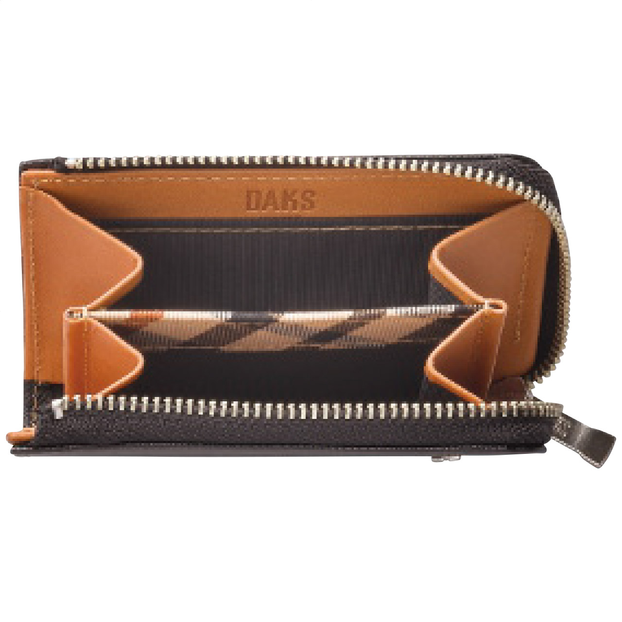 美しく輝く上品な光沢を放つエンボス革を使用。気品あふれる表のDDのロゴ、内側のハウスチェックカード段がアクセントです。