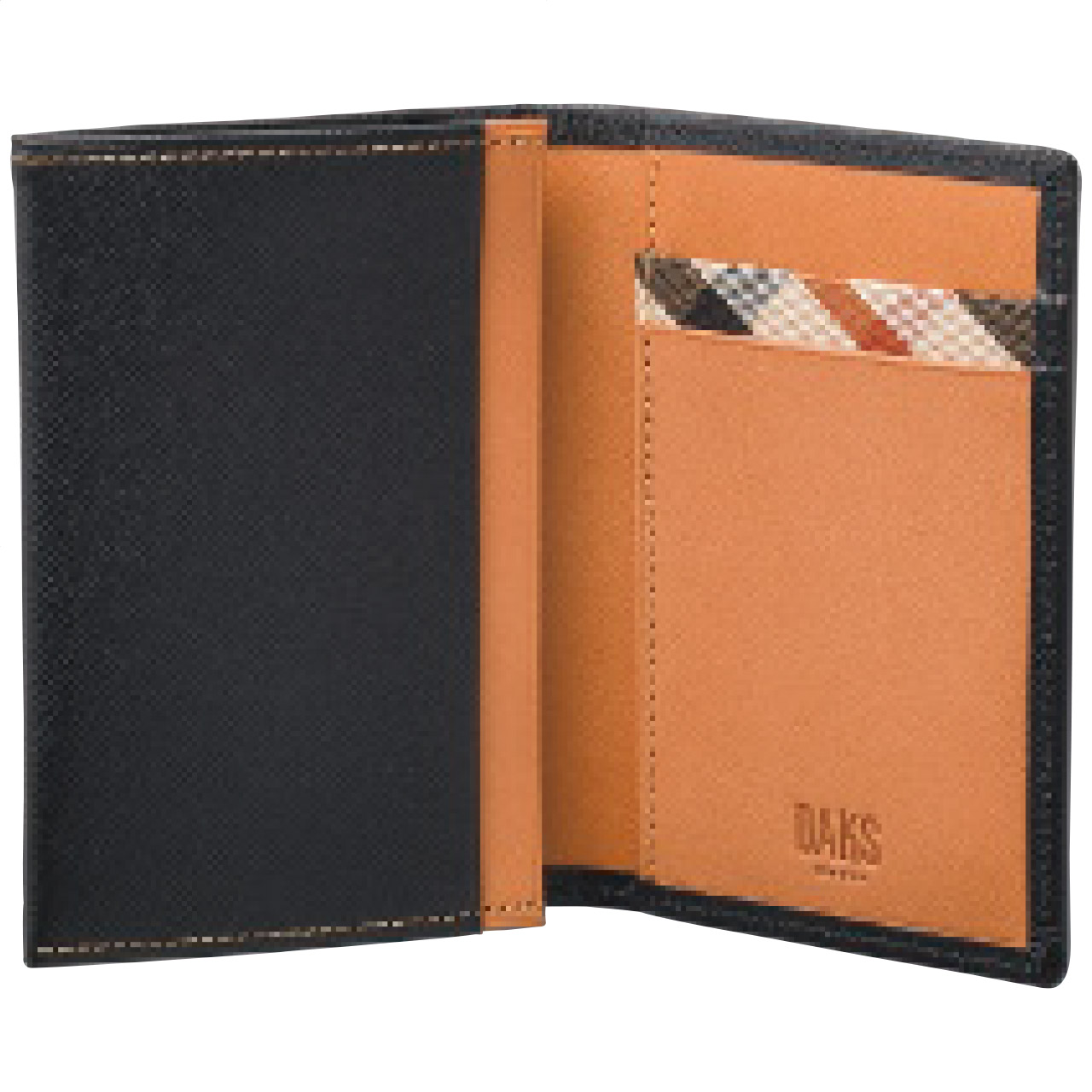 美しく輝く上品な光沢を放つエンボス革を使用。気品あふれる表のDDのロゴ、内側のハウスチェックのカード段がアクセントです。