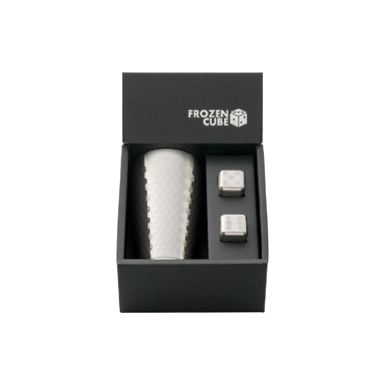 ■商品詳細 直径7.5cm高さ13.7cm容量約350ml2重タンブラー1客・2.5×2.5×2.5cmアイスキューブ2個・ステンレス・[中国製]