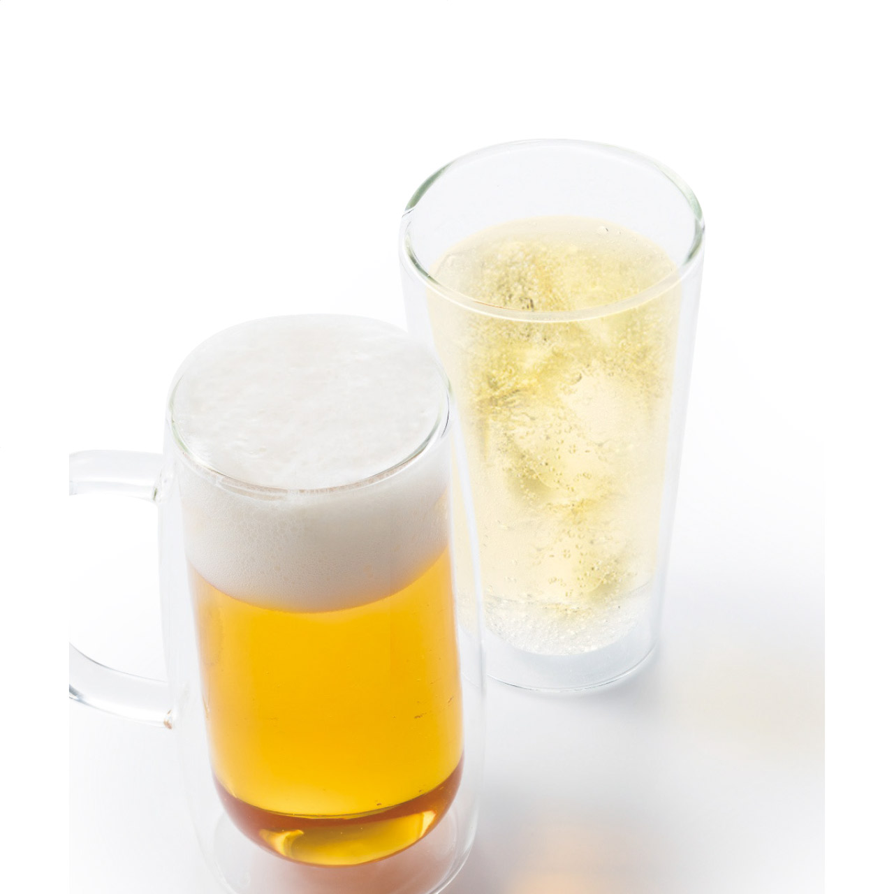 二重構造で保温・保冷ができるビールジョッキです。結露がでません。温かい飲み物も冷たい飲み物もOK。