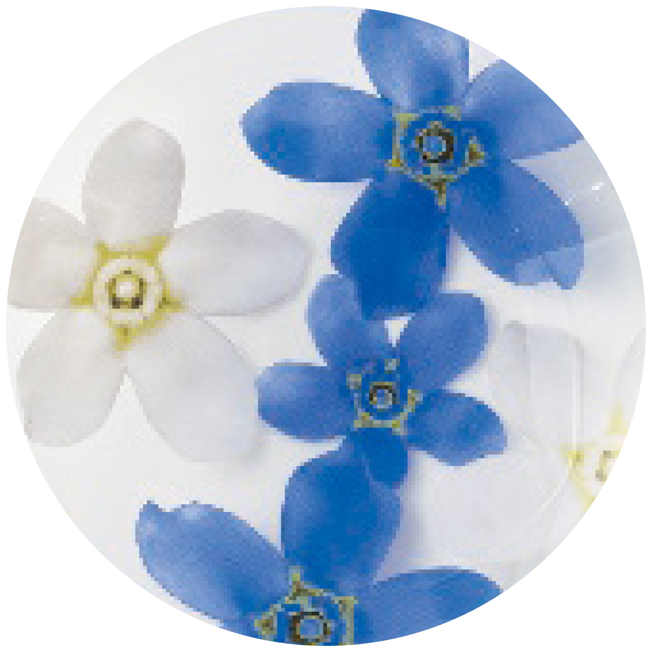色鮮やかな花をうかべた花手水をモチーフしたゆらりグラス。光の屈折により水面に花が浮かんでいるようにみえたり模様のように大きく見えたり見る角度によってその表情が変ります。