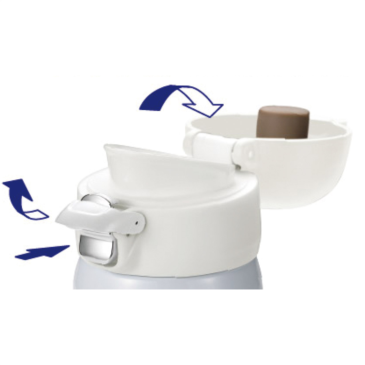 真空2重構造で長時間、保温・ボタン一つですぐ飲めるワンタッチ構造。シンプルな白一色ですっきりデザイン。ロック付きでカバンの蓋が開く誤動作を防止!