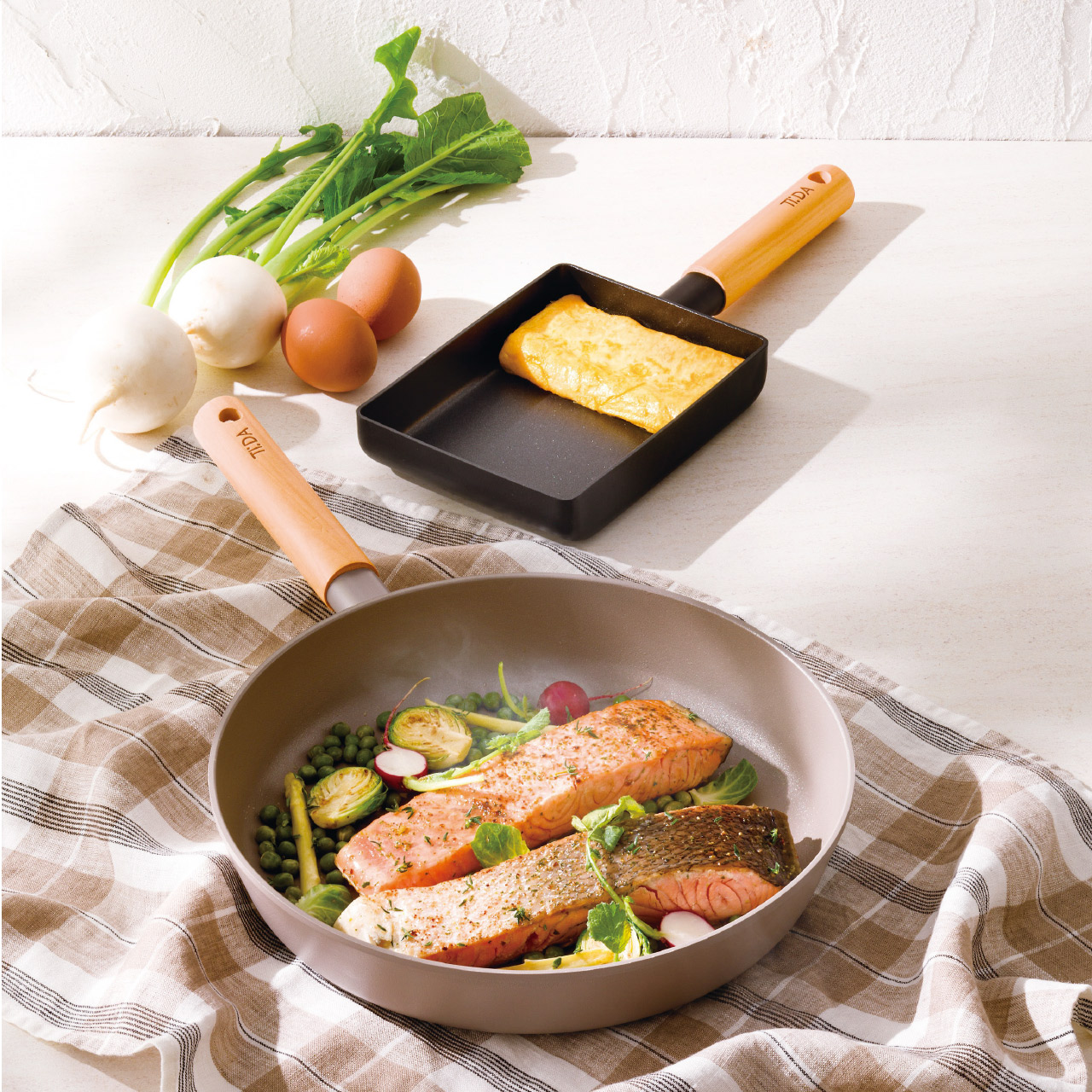 こびりつきにくく耐久性にも優れたWコーティング。軽くて頑丈。PFOAフリー。