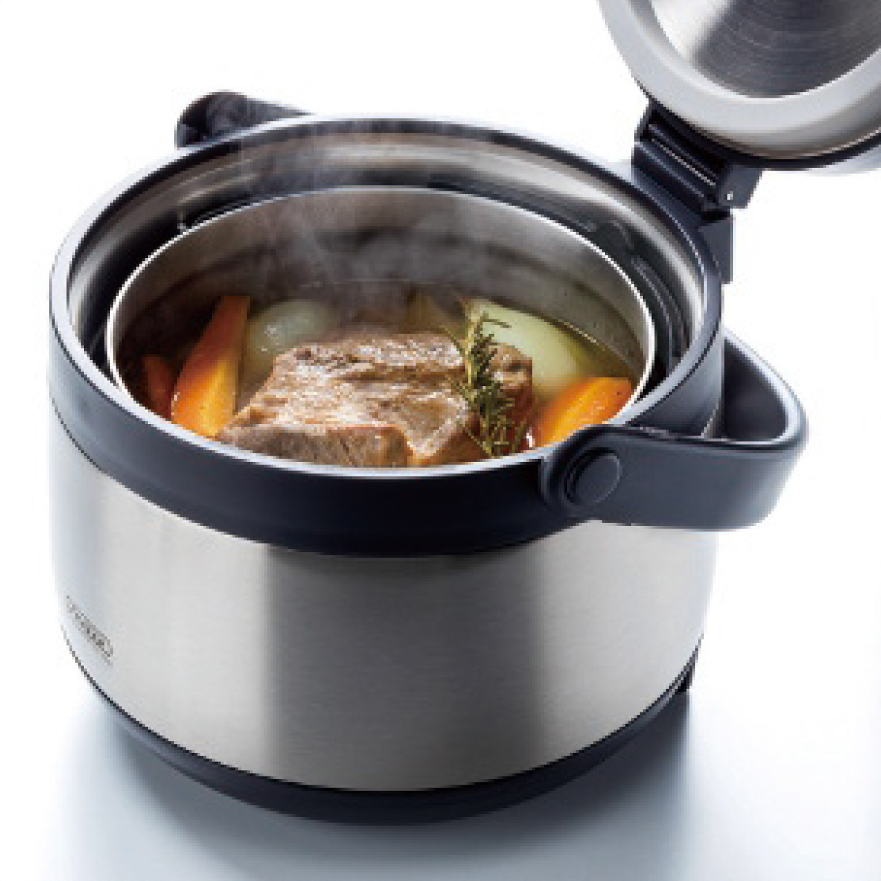 保温器のフタと本体に真空断熱構造を採用し、高い保温力を発揮します。火にかける時間が少ないからガスや電気代の節約になります。調理器で短時間加熱後に、保温器に移して余熱で素材に熱を通して調理できるので、保温調理の間は時間を有効利用できて省エネにも効果的です。保温調理だけでなく、「保冷」にも使えます。ジュースや氷など。アウトドアシーンでもとても便利です。レシピブック付き。