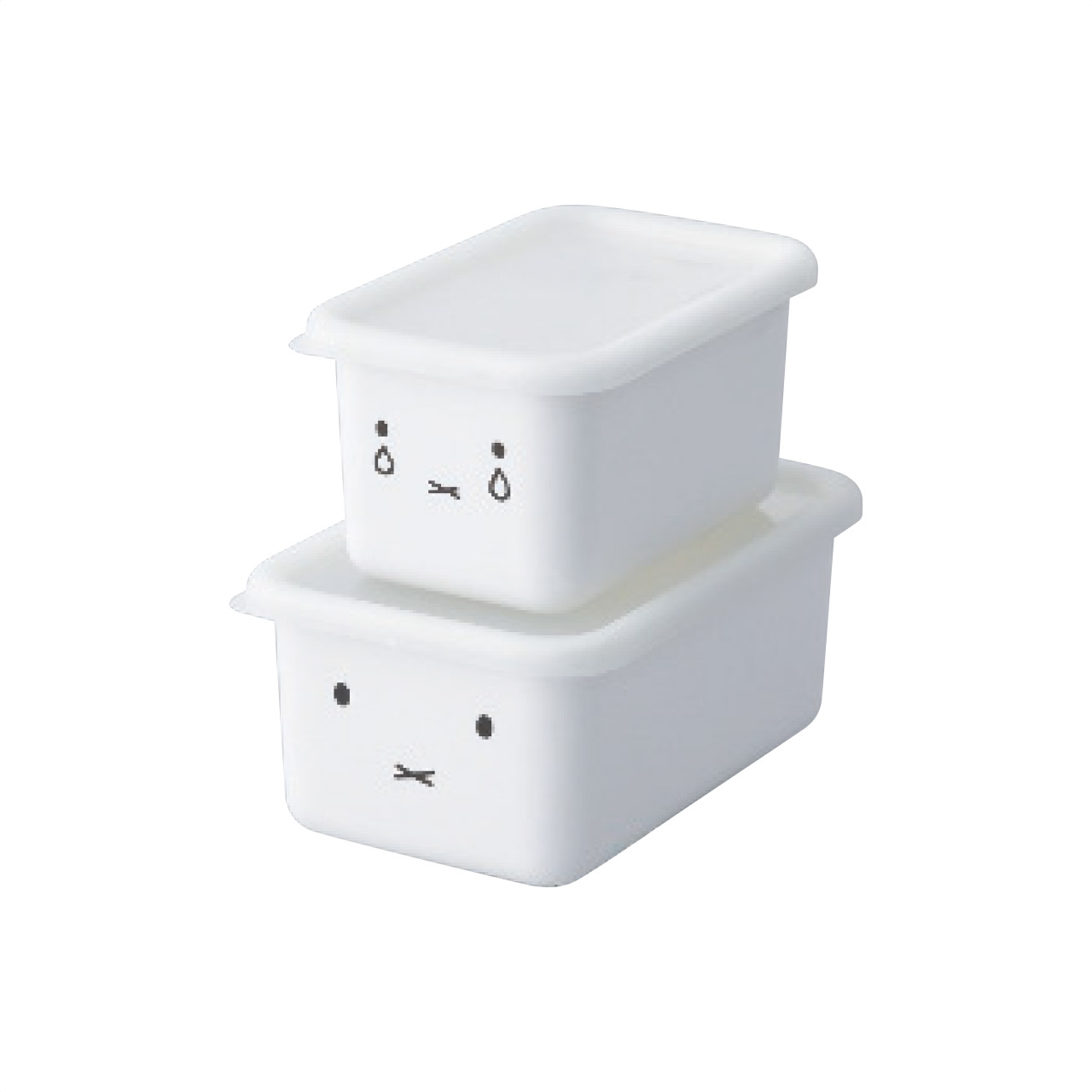 ■商品詳細 17.5×11.5×7.5cm容量1.12l角型容器(M)・14.5×9.5×7.5cm容量0.7l角型容器(S)各1個・ほうろう用鋼板・蓋:ポリプロピレン樹脂(縁:熱可塑性エラストマー)・[タイ製]