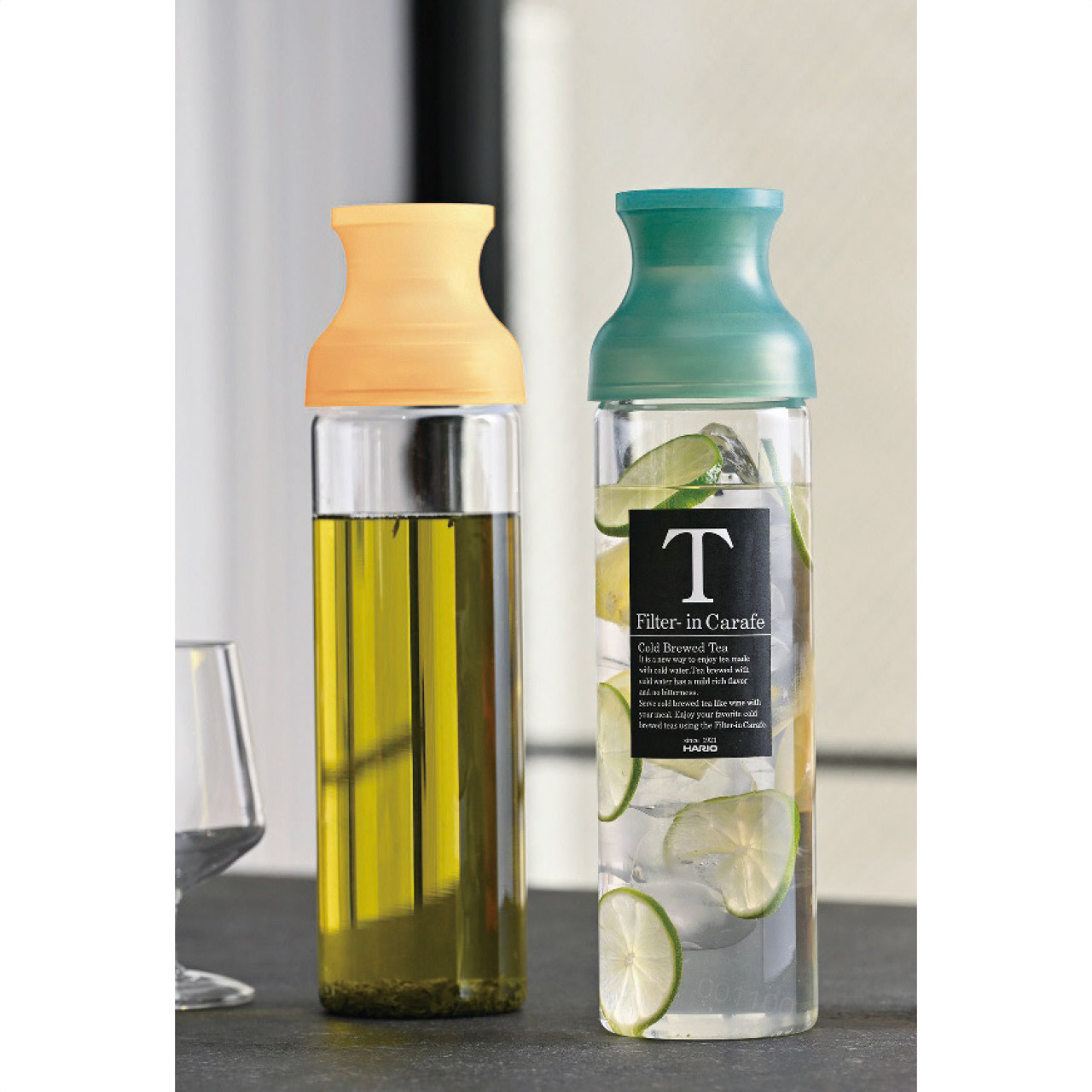 ボトルに茶葉と水を入れるだけ、カラフェ型の水出し茶ボトルです。フィルターと注ぎ口が一体化したので、お手入れがしやすくなりました。容量は1,000mLとたっぷり入ります。