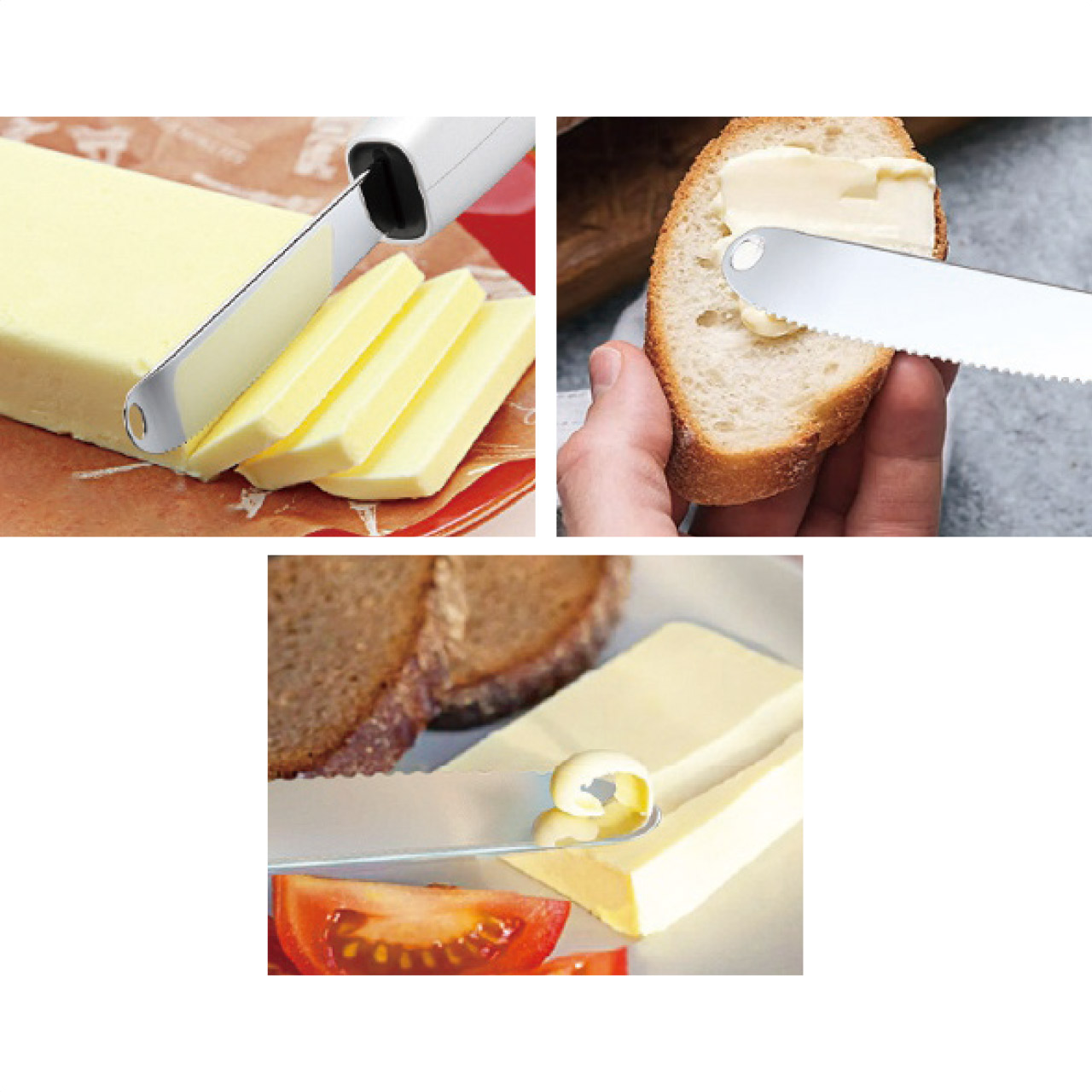 ブレードに電熱線を内蔵。ブレードを熱くすることで固いバターを溶かしながら簡単にカットしスプレッドできます。40℃、70℃設定。おさいふに優しい充電式。