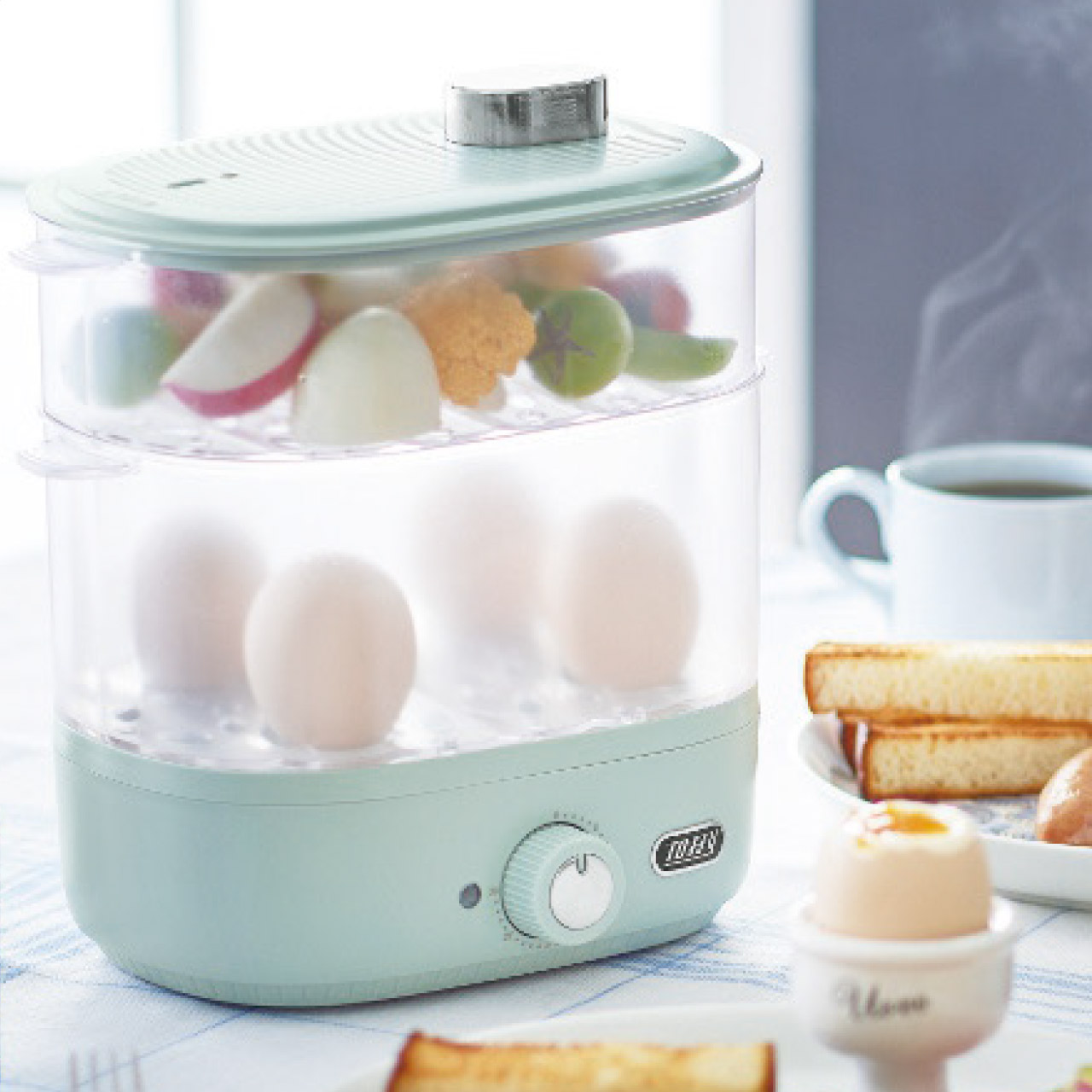 具材を入れてダイヤルを回すだけ! 誰でも簡単蒸し料理!朝の忙しい時間や、夜もう一品欲しい時にも大活躍。インテリアの邪魔をしないかわいいデザイン!コンパクトな設計なので、キッチンで場所をあまりとらないのもうれしいポイント。