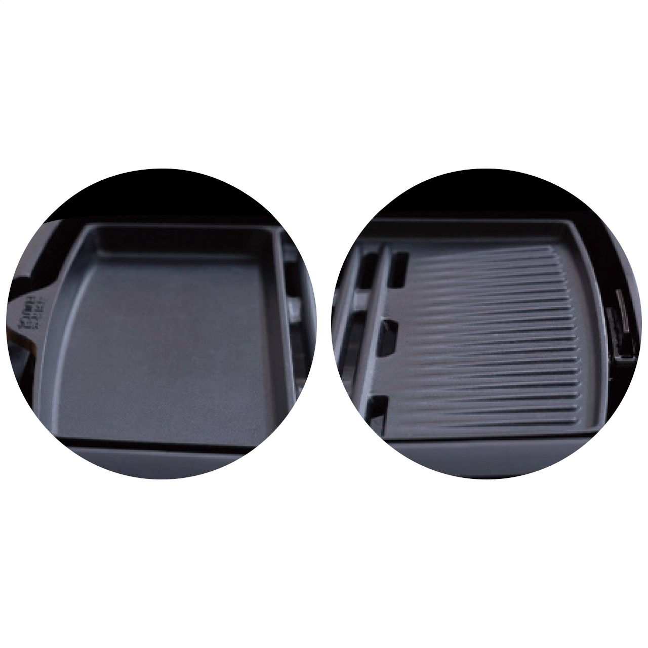プレートからスピーディーに油が落ちていくため、当社従来品(ホットプレート)に比べ発煙量87%カット、油ハネ98%カット。プレートは洗いやすくお手入れ簡単。