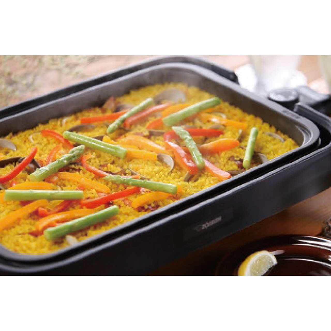 「焼く」から「煮る」まで料理のレパートリーが広がる深さ3.5cm「深型プレート」。遠赤トリプルチタンセラミックコートなので丈夫で長持ち、耐久性が高いです。かる~くセットできる「カチッと温度調節プラグ」。