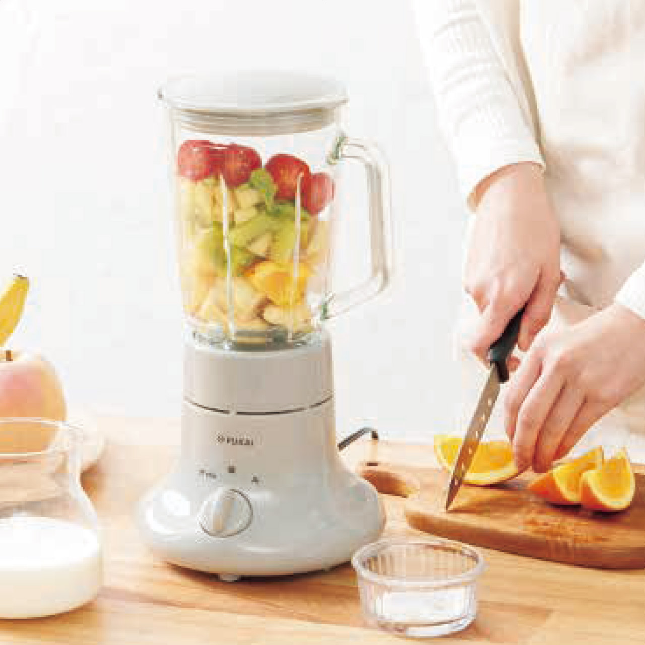 キズや汚れ、臭い移りが気にならないガラスボトルを採用したジュースミキサー750ml容量で2~3人分のジュースづくりに対応ダイヤルスイッチで扱いやすく、お好みの食感に調整しやすいフラッシュスイッチを採用本体は滑りにくい凹凸の形状で、キッチンでもしっかり押さえてご使用いただけます。