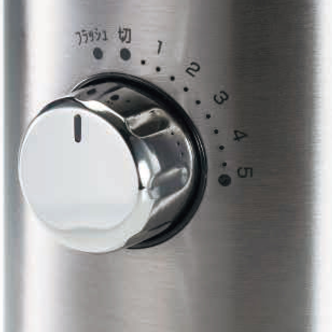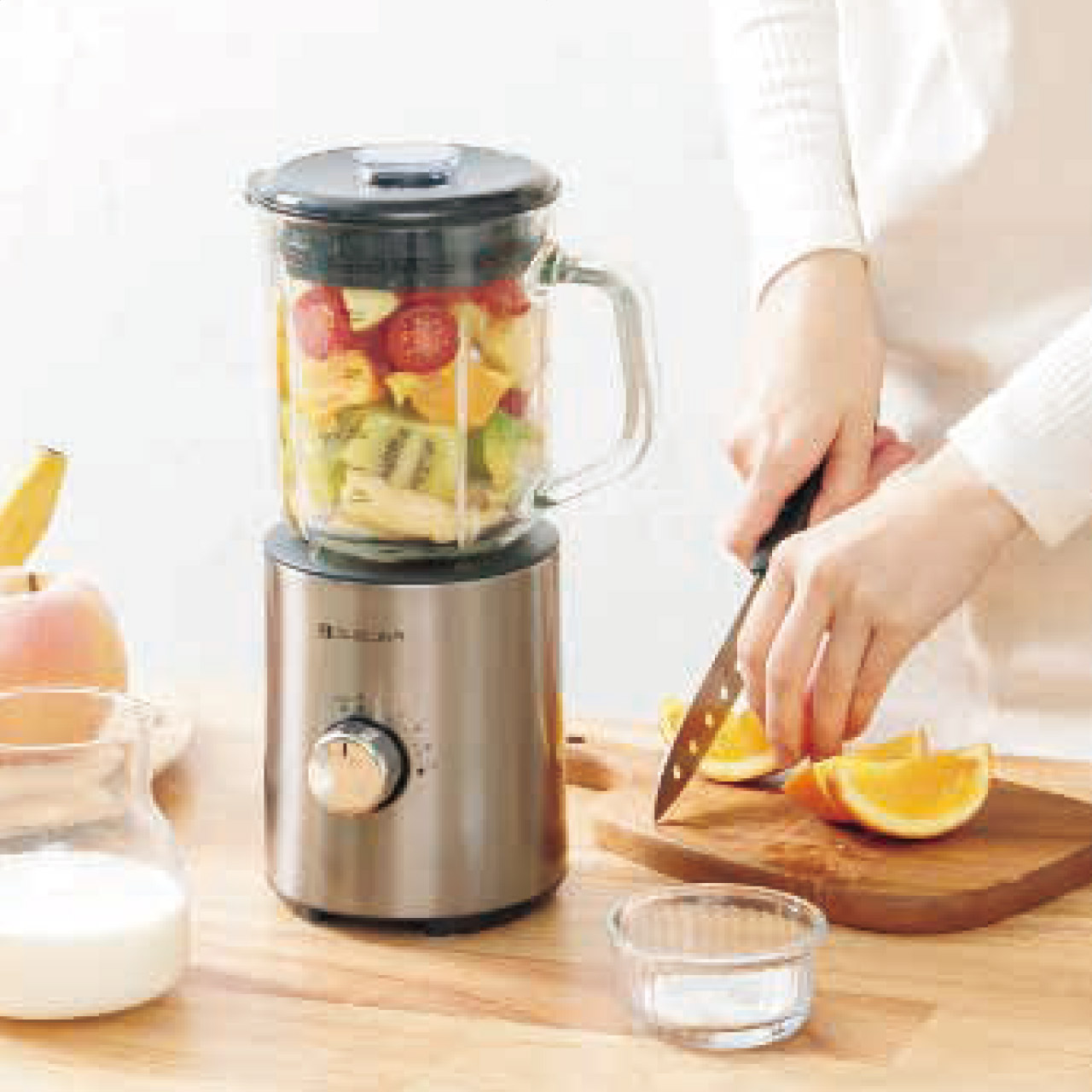 ●5段階のスピード調節が可能なハイパワーブレンダー。速度別にスイッチ部分のLEDが点灯し、どのスピードなのか一目でわかります。●300Wのハイパワーモーターを搭載。素早くジュースを作る事ができます。●ブラックチタンコート刃を採用。氷も一緒にかく拌してスムージーなどもつくれます。●3~4人向けにピッタリの800mlガラスボトルを採用。キズがつきにくく汚れが目立たないので、キレイに衛生的にご使用いただけます。●正しくセットしないと作動しない安全設計。万が一の事故を防ぎます。●本体二重構造の消音設計。(77db以下)
