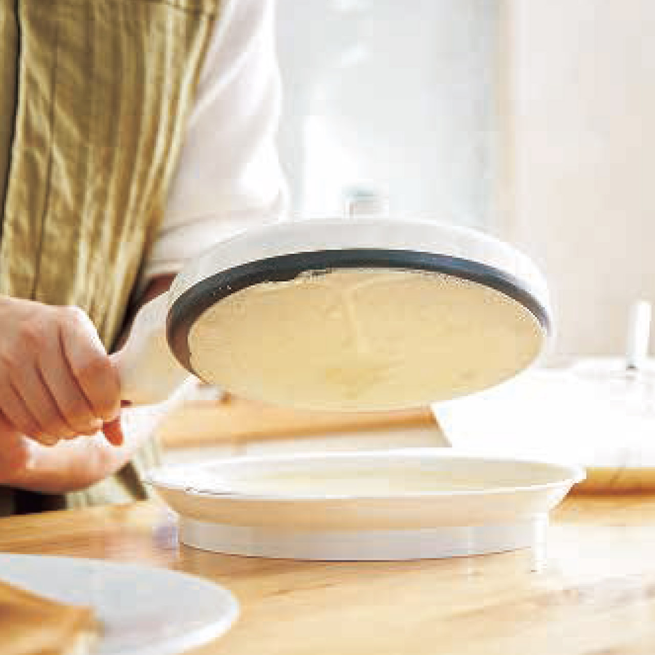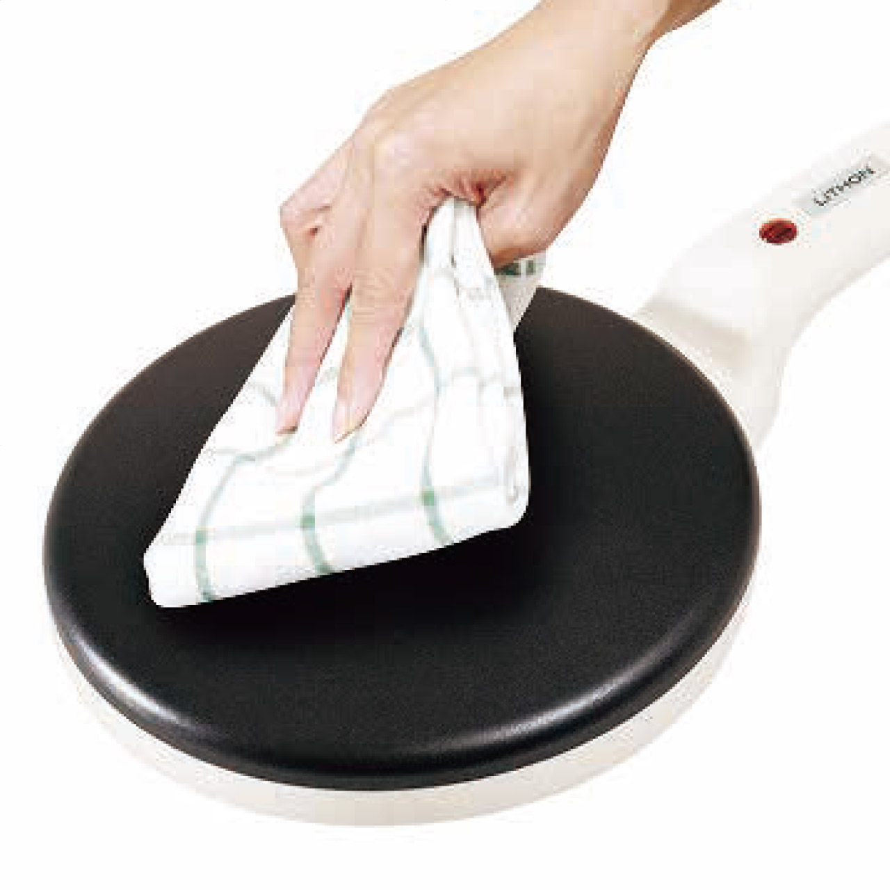 ■生地の入ったトレーに熱したプレートを裏返して浸すという逆転の発想。数秒浸すだけで、必要な分だけ均等に生地がプレートに付くので、厚みにムラがなく薄くて本格的な生地が簡単に焼けます。ヘラなどを使ってプレートから生地をはがしてお皿に落とすだけなので、破れる心配もありません。■軽量・コンパクト設計プレート直径20cm、重さ750gでコンパクト。お子様にも使っていただけます。※お子様が使用されるときは、必ず大人の方と一緒にお願いします。■アレンジいろいろお好みのトッピングをしたり、生地をそば粉で作ってガレットも楽しめます。短時間で生地が焼けるので、ミルクレープ作りも簡単です。■拭くだけお手入れ簡単フッ素樹脂加工なので、使用後はプレートを濡れた布巾でふき取るだけ。お手入れ簡単です。