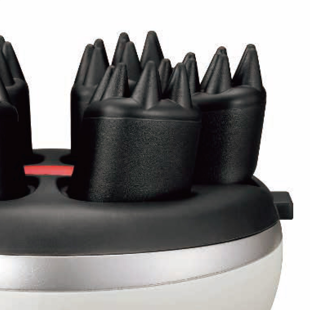 頭皮ケアマシン シェアNO.1※1のミーゼから出たEMS搭載のヘッドスパ。低・中周波EMSを掛け合わせたことで、頭皮から首・肩などのボディまで立体的に揉み上げ、心地よく刺激します。頭皮用のニードルアタッチメントは、密度が高く鋭いブラシが髪をかき分け、頭皮の筋肉まで深く刺激。お風呂でシャンプーしながらの頭皮洗浄もおすすめです。顔・ボディ・頭皮すべてに使えるもみだしアタッチメントは、エステティシャンの手技を再現したつかみ揉みで、筋肉の緊張を解放してリラックス。頭皮とお顔、Wのアプローチでリフトケア※2を叶えます。※1(株)富士経済「美容&健康家電市場・関連サービスデータ」2023-2024年実績 日本国内の美容家電におけるメーカーシェアとして※2引き上げるように動かすこと