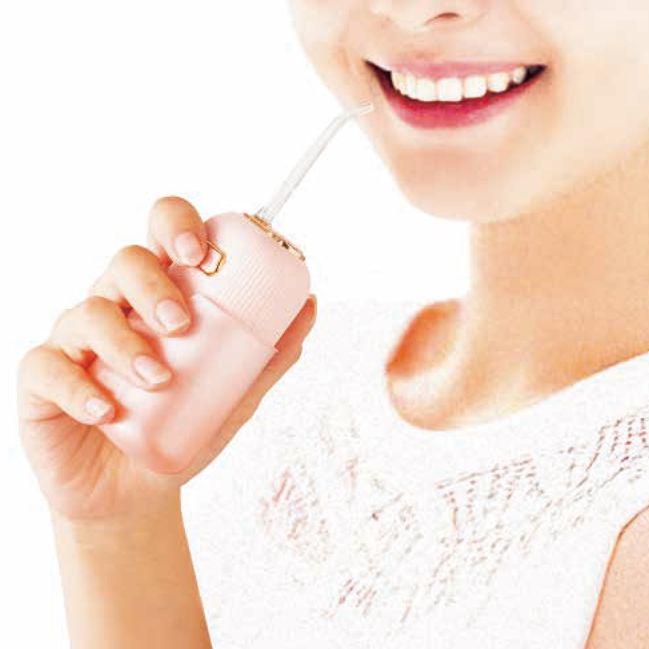 オフィスや外出先、どこでも使えるオーラルフロッサー。3本のノズルと3つのモード付き。コンパクトでかわいいデザインです。