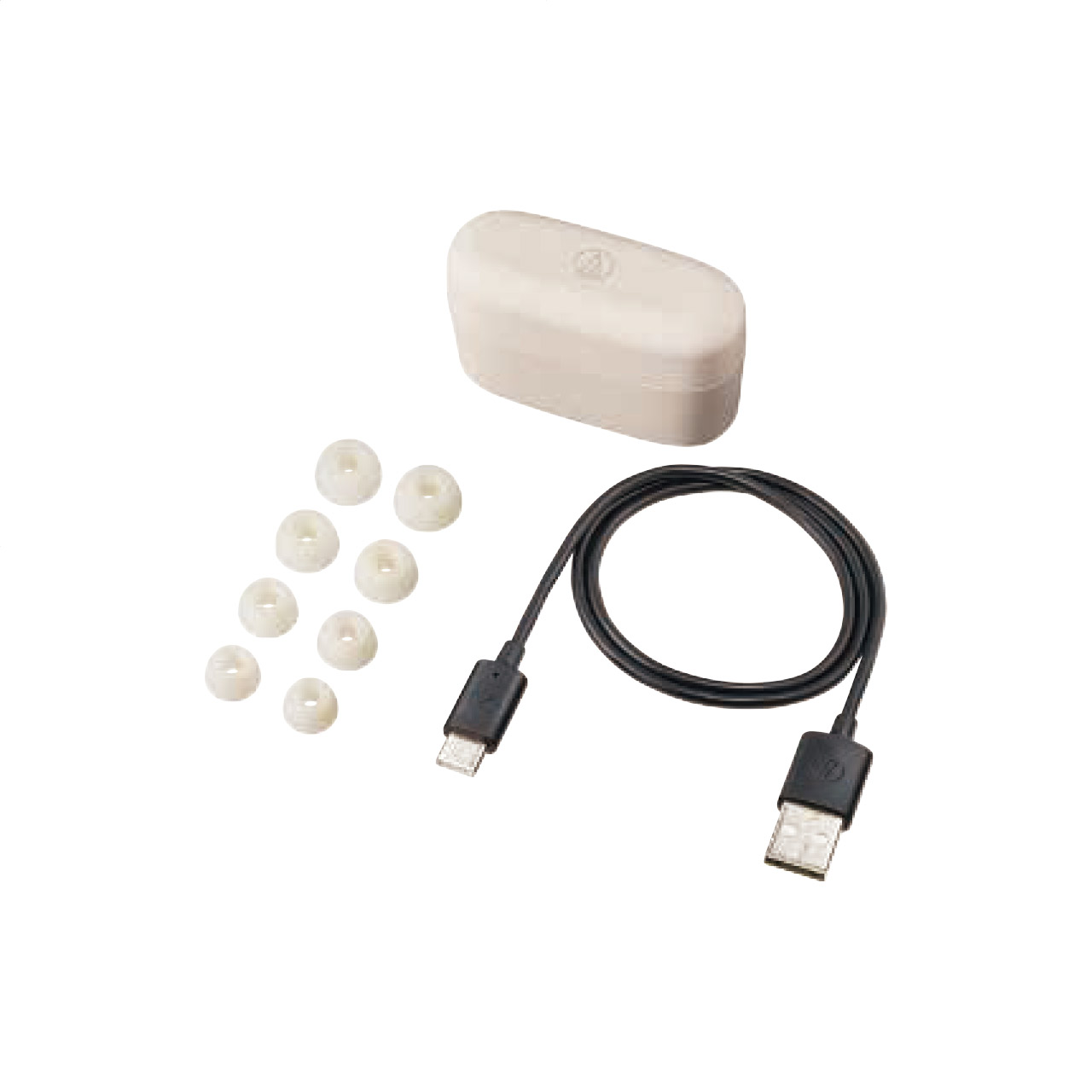 ■商品詳細 6×2.4×3.95cm・ABS樹脂・イヤーピース(XS・S・M・L各2個)、充電用USBケーブル付・[ベトナム製]