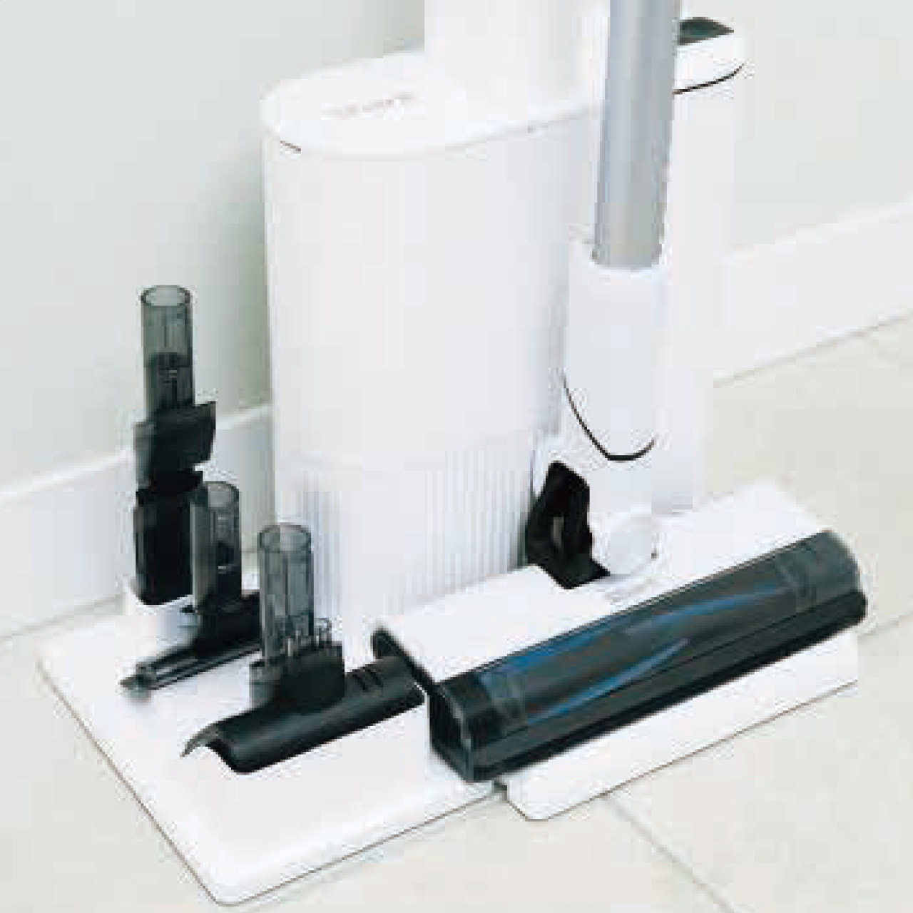 ■商品詳細 26.7×15.2×104.1cm・リチウムイオンバッテリー、自動ゴミ収集ドック(充電機能付)、アクセサリードック、ミニモーターヘッド、ブラシ付すき間用ノズル、マルチノズル付・[中国製]