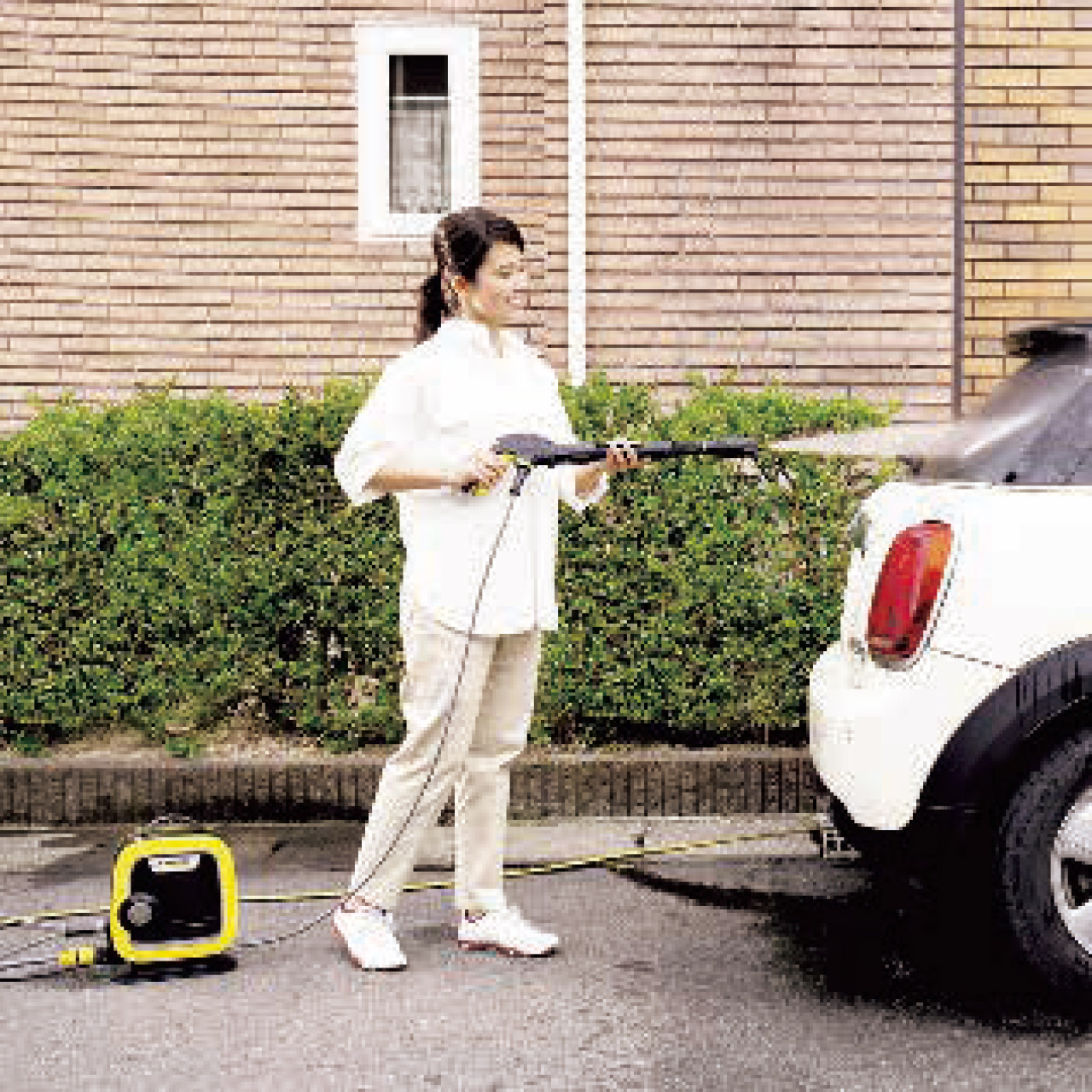 日本の住宅事情に合わせて開発された、コンパクトさと扱いやすさを兼ね備えた高圧洗浄機です。パワフルながらも静音タイプなのでご近所など周りを気にせず清掃ができます。ベランダや駐車場が狭くても取り回しやすいサイズです。家の外回り、車の洗浄だけではなく、浴室の清掃にもお使いいただけます。本体背面の収納ケースに標準装備品を全て収納可能。