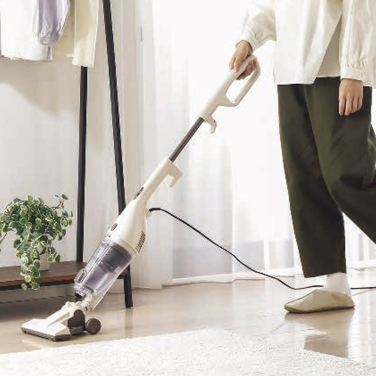 すいすい吸い取りながら拭き掃除ができるワイパー付。 1.8kgの本体重量でお掃除らくらく。 布団ノズルで布団やベッドのお掃除にも。 簡単にゴミ捨て出来る「楽ステ」機構搭載。 吸込仕事率40W。紙パック不要のサイクロンで経済的。