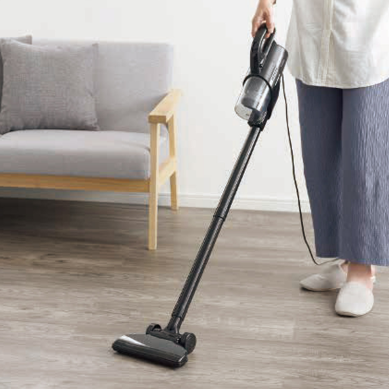軽量コンパクトなサイクロン方式のACクリーナー サイクロン部は集じん分離性能向上により吸込力持続可 身近な掃除や延長パイプを用いた床掃除も可能 部屋の隅に置ける!自立収納が可能(床用吸込口のみ取付時) 取りまわしが楽。トイレや階段の掃除に便利。