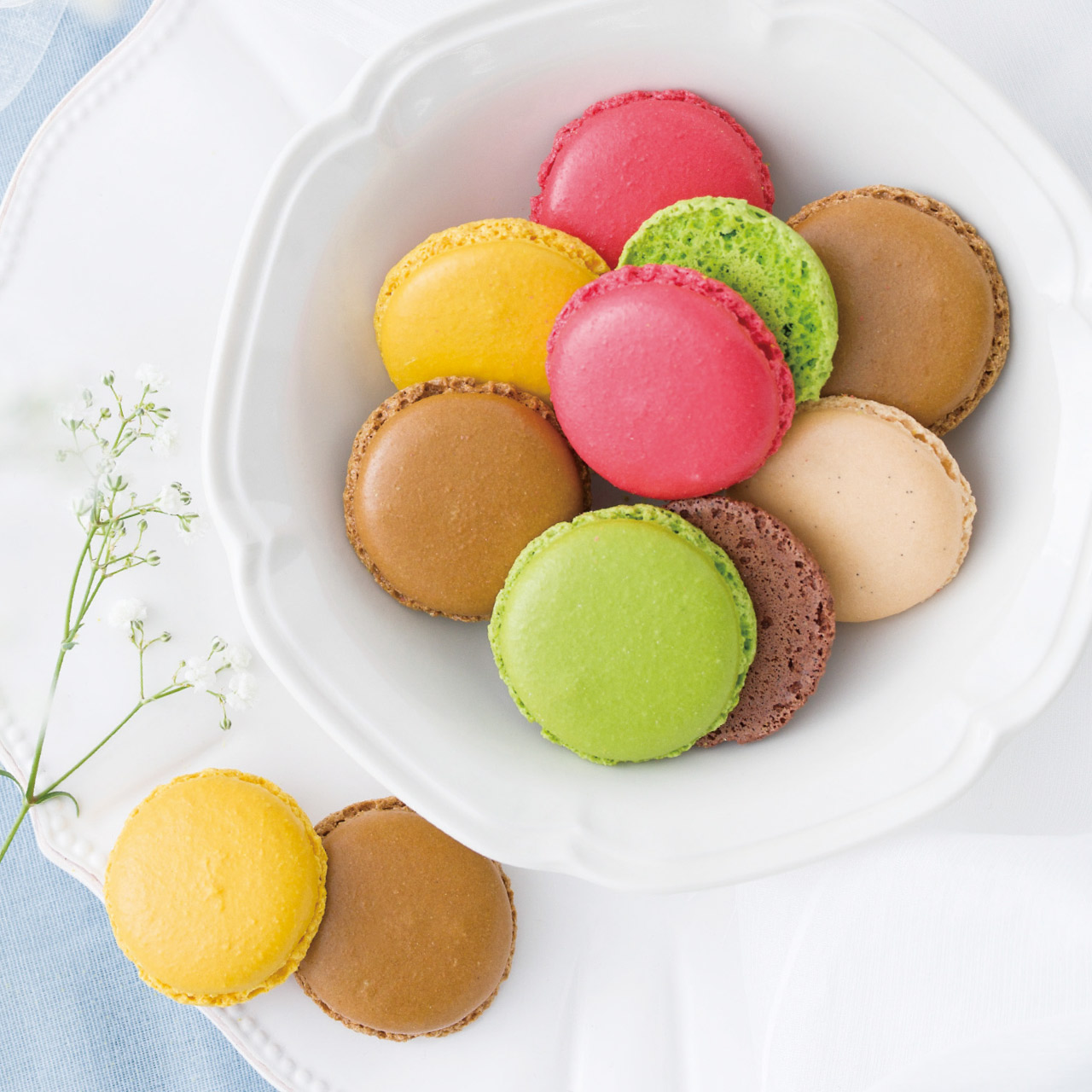 ダロワイヨこだわりのマカロンコック(生地の部分)。アーモンドの豊かな香りはそのままに、サクッと焼きあげました。