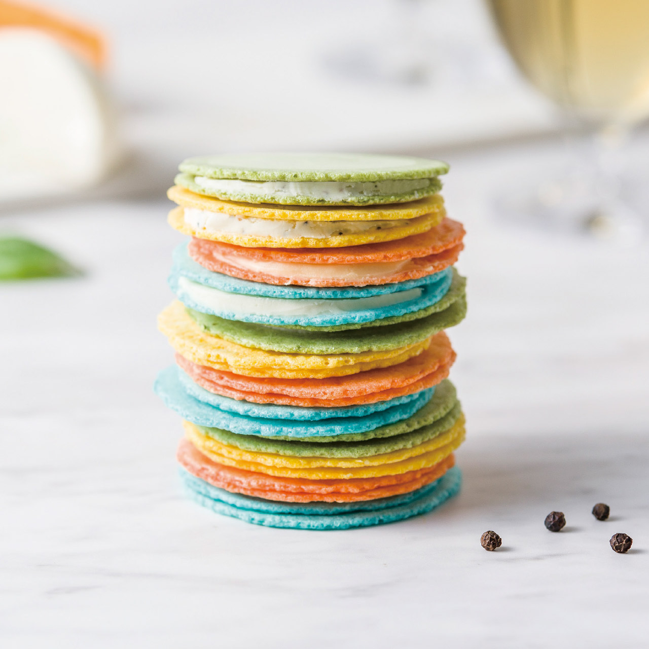 クアトロ(QUATTRO) とは、イタリア語で「4」を表す言葉。志満秀オリジナルの4種のチーズクリームをえびせんべいでサンドしました。