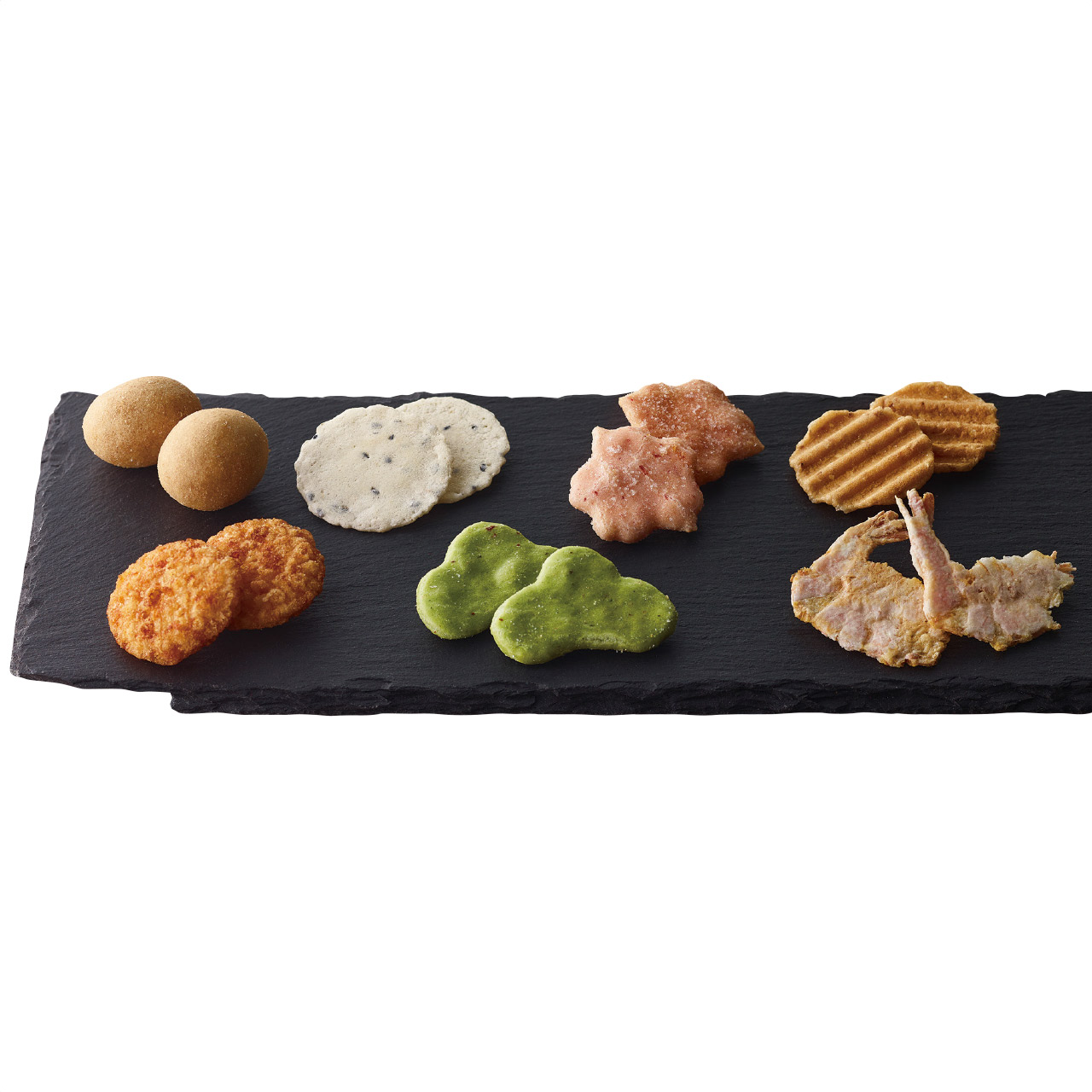 海老煎餅、米菓子、豆菓子を「サックサック」「パリッパリ」とした軽い歯ざわりのひと味違った詰合せに仕上げました。