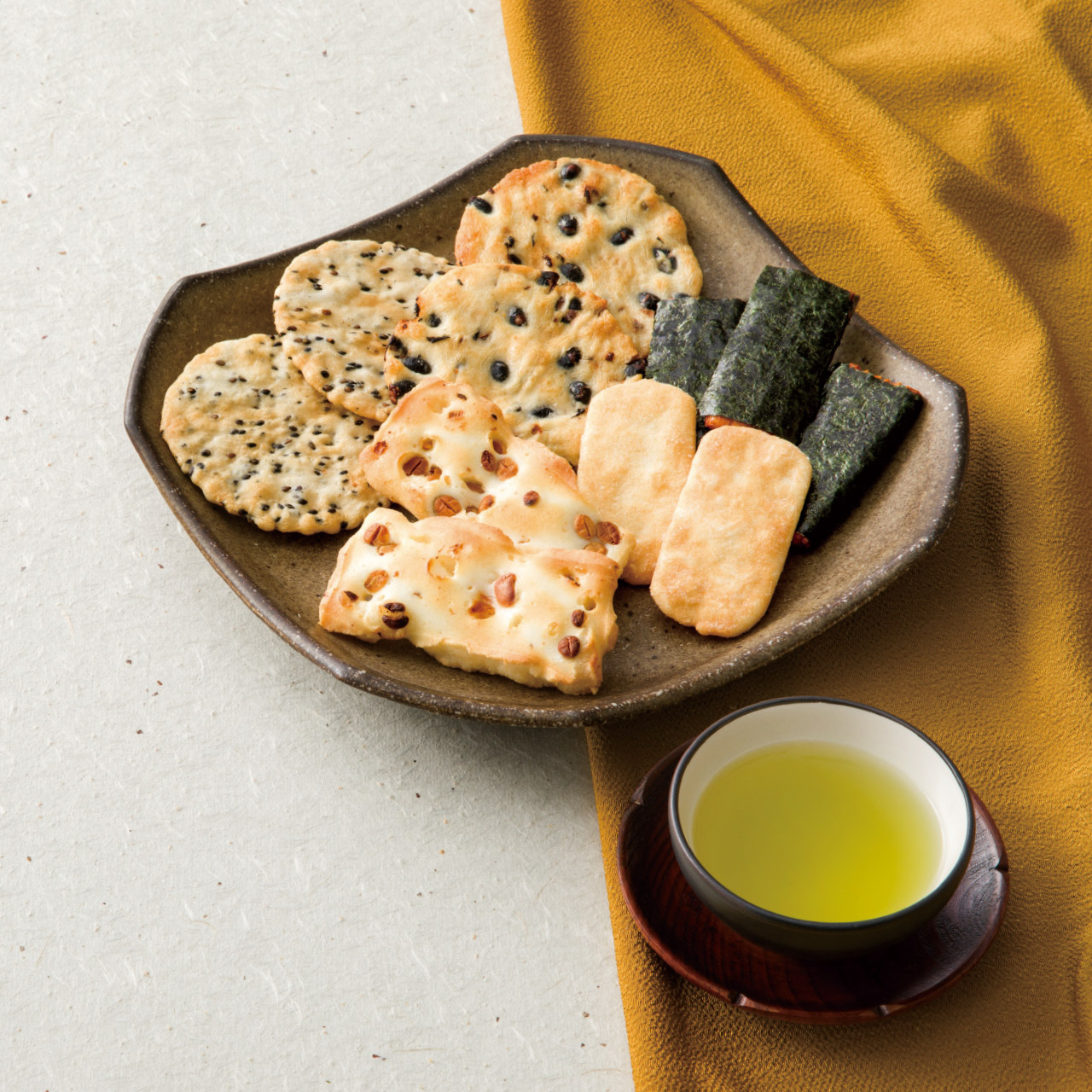 ■商品詳細 あまからせん(2枚入)7袋・胡麻せんべい(1枚入)6袋・黒豆せんべい(1枚入)5袋・豆おかき(1枚入)10袋・海苔巻おかき(1枚入)8袋・賞味期間/製造日より常温約150日・[日本製]・【小麦・ごま・大豆】