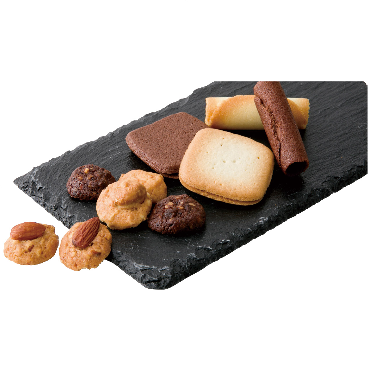 厳選したナッツを使用し、香ばしく焼き上げたマカロンタイプのクッキーです。一粒をまるごと贅沢にトッピングしたアーモンドとカシューナッツ、マカダミアナッツ、チョコレートを練りこんだチョコレートチップの4種類の味がお楽しみいただけます。