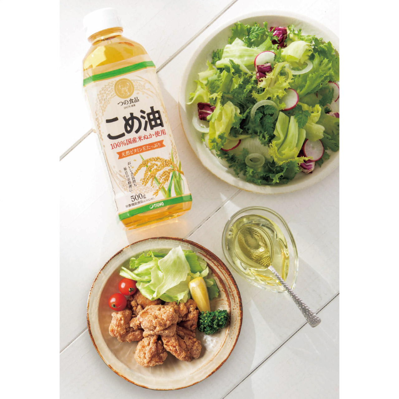 国産こめ油は、国産原料の米糠から抽出・精製した良質なサラダ油です。油のいやな臭いも気にならず、くせもなく、酸化しにくい油です。素材の持ち味を活かし、どんな料理にもご使用いただけます。