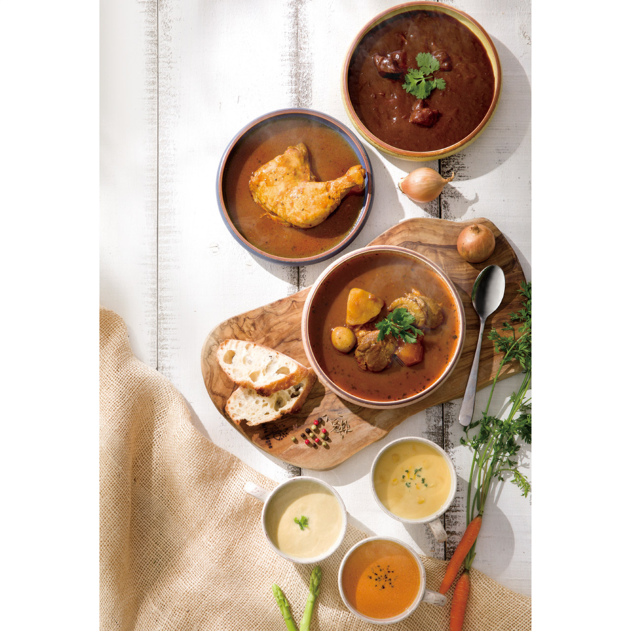 ■商品詳細 富良野スープカレー(チキンレッグ入300g・厚切り豚バラ肉入260g・ほたて2個入260g各1個)・賞味期間/製造日より常温約720日・[日本製]・【卵・小麦・大豆・鶏肉・豚肉・りんご】