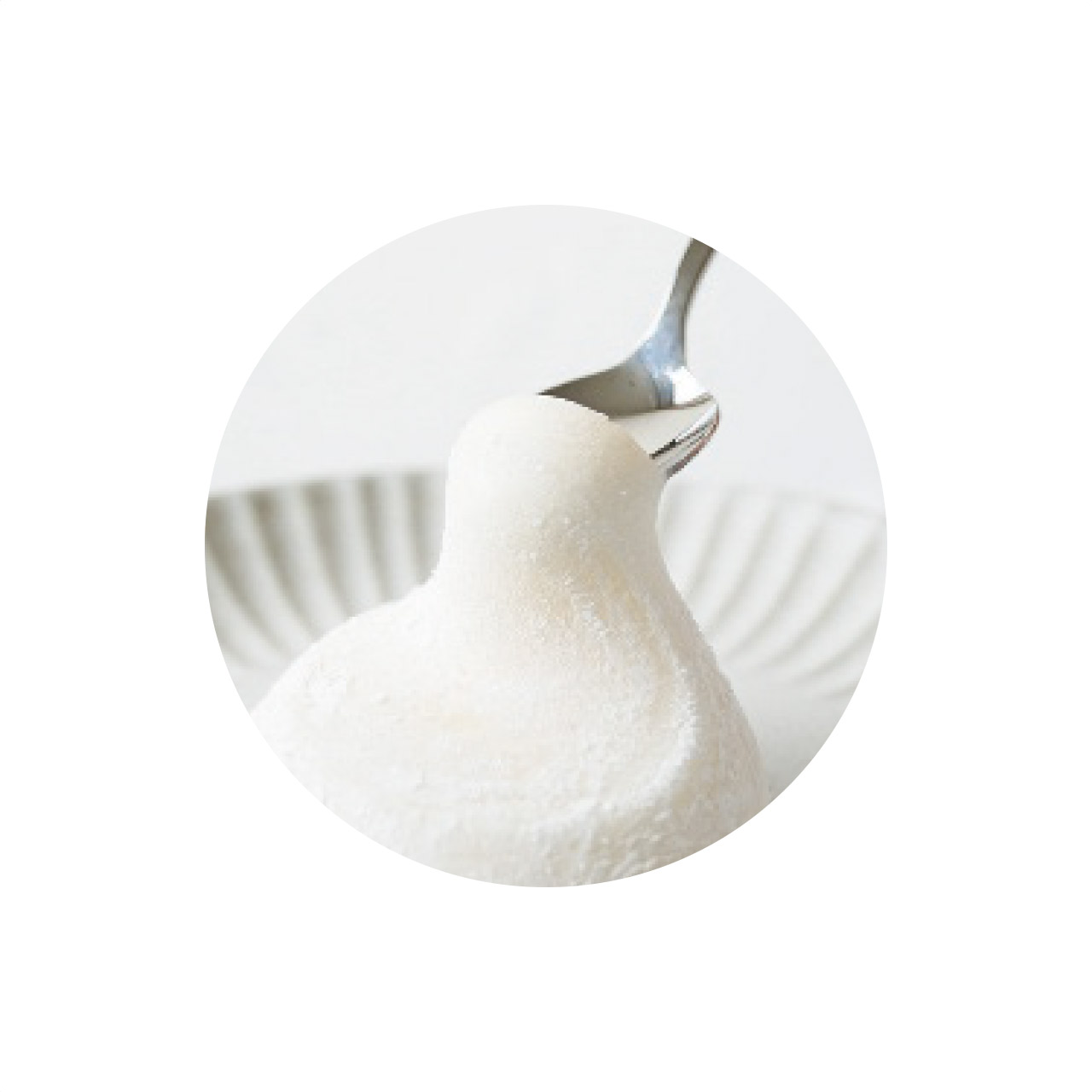 くちどけにこだわった「とろけるくりーむ大福」。手で持って食べることができないほどのとろける生地で、八天堂のクリームを包みました。カスタード、つぶあんカスタード、あまおう苺の3種のお味が楽しめます。