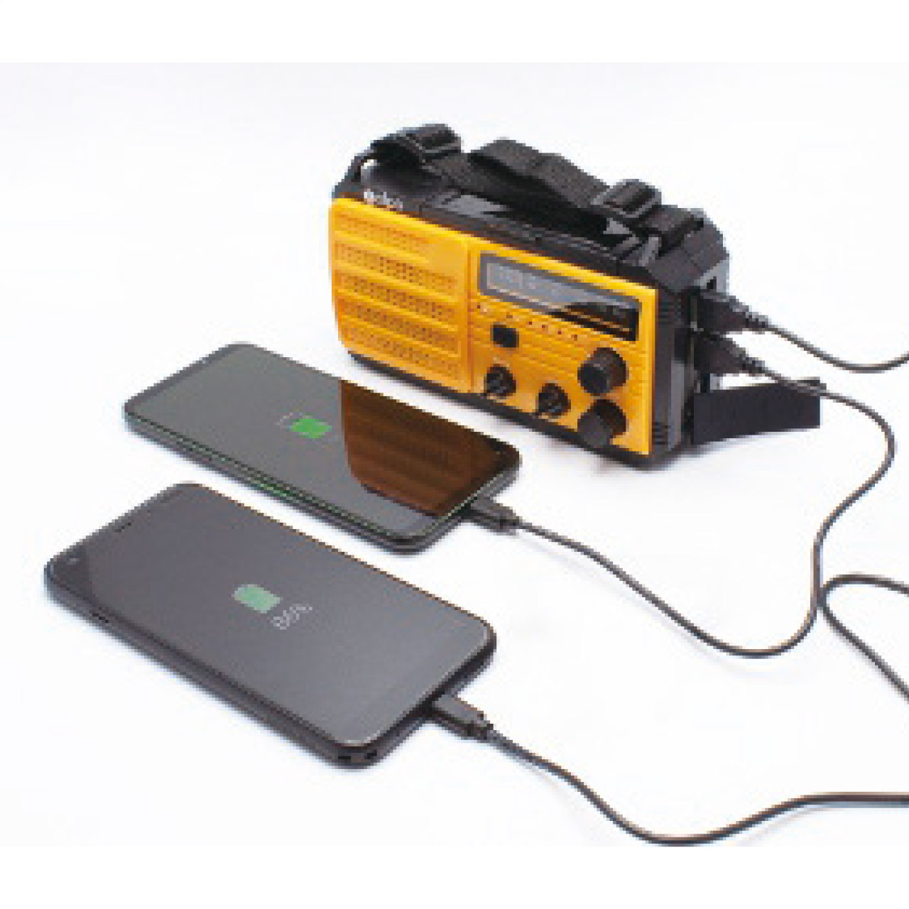 災害時やアウトドアで役立つ機能満載です。● 3WAY充電 「手回し・ソーラー・USB」●スマートフォン2台同時充電が可能な 8000mAh蓄電地●FM/AMラジオ(ワイドFM対応・周囲に配慮しながら聞けるイヤホンジャックを装備)●3段階の明るさの懐中電灯●2段階の明るさの読書灯●音と光で危険を知らせるSOSアラーム