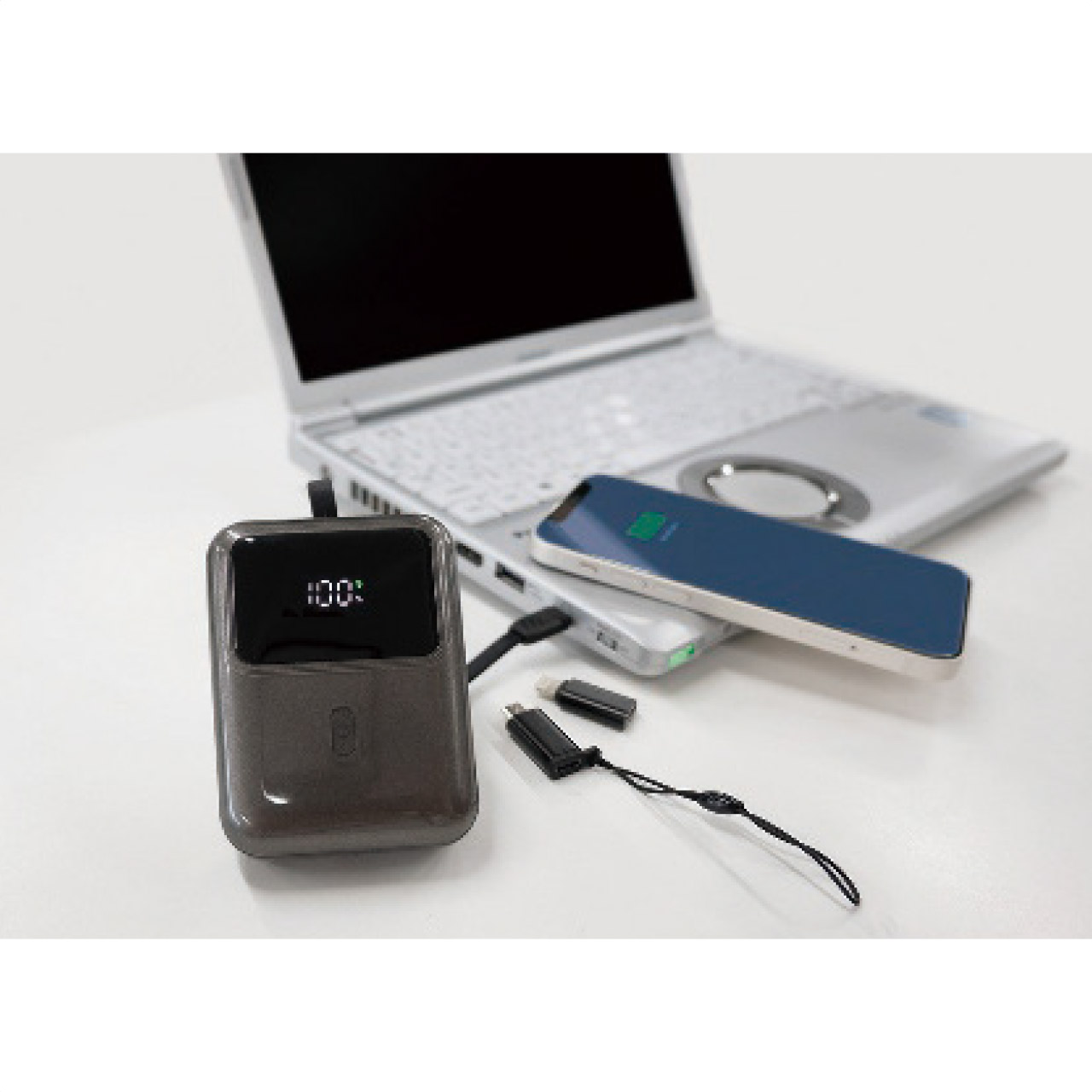 ●タイプCケーブル内蔵+ライトニング・マイクロUSBプラグ付属で各種USB機器を急速充電。●わずか177gの軽量ボディーに、大容量蓄電池、外出時に力強いサポーター。●メタリックグレー、ホワイト・スカイブルーの2色をご用意。
