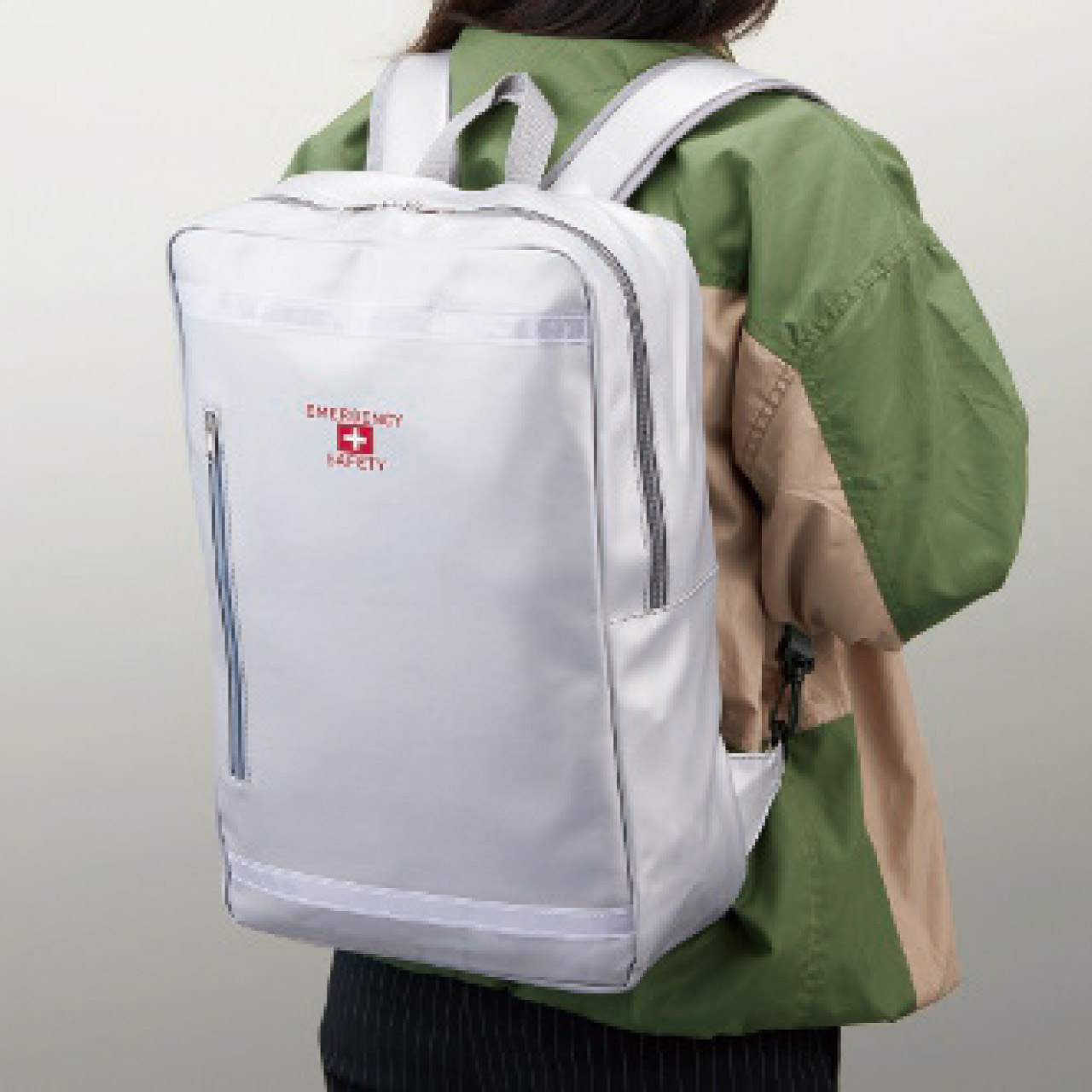 スマートなデザインと防災イメージを両立させた防災セット! 置く場所を選らばず、玄関など直ぐに持ち出せる場所でも、違和感なく保管出来ます。