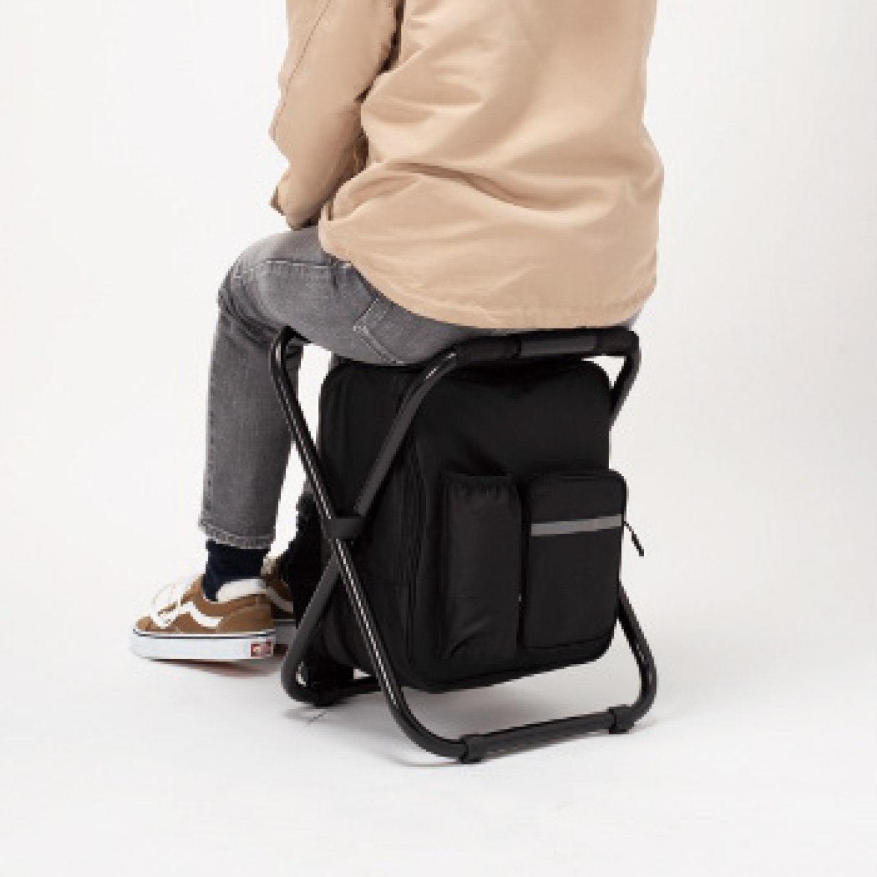 「イス」として避難所や災害時の行列などで活躍する便利なリュックの防災セット。リュックは水をはじく撥水加工素材を使用。