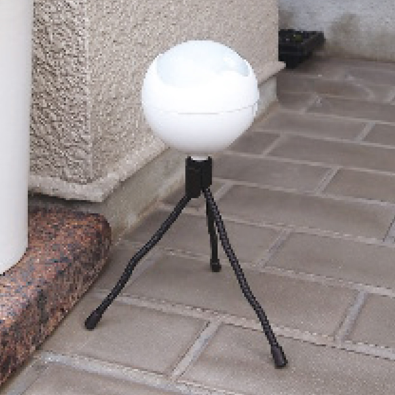 ■商品詳細 直径9cm高さ8.6cm・ABS樹脂、ポリカーボネート、シリコーン、ナイロン、エラストマー、アルミニウム・単3電池3本使用(別売)・キズ防止パッド、結束バンド、三脚付・[中国製]
