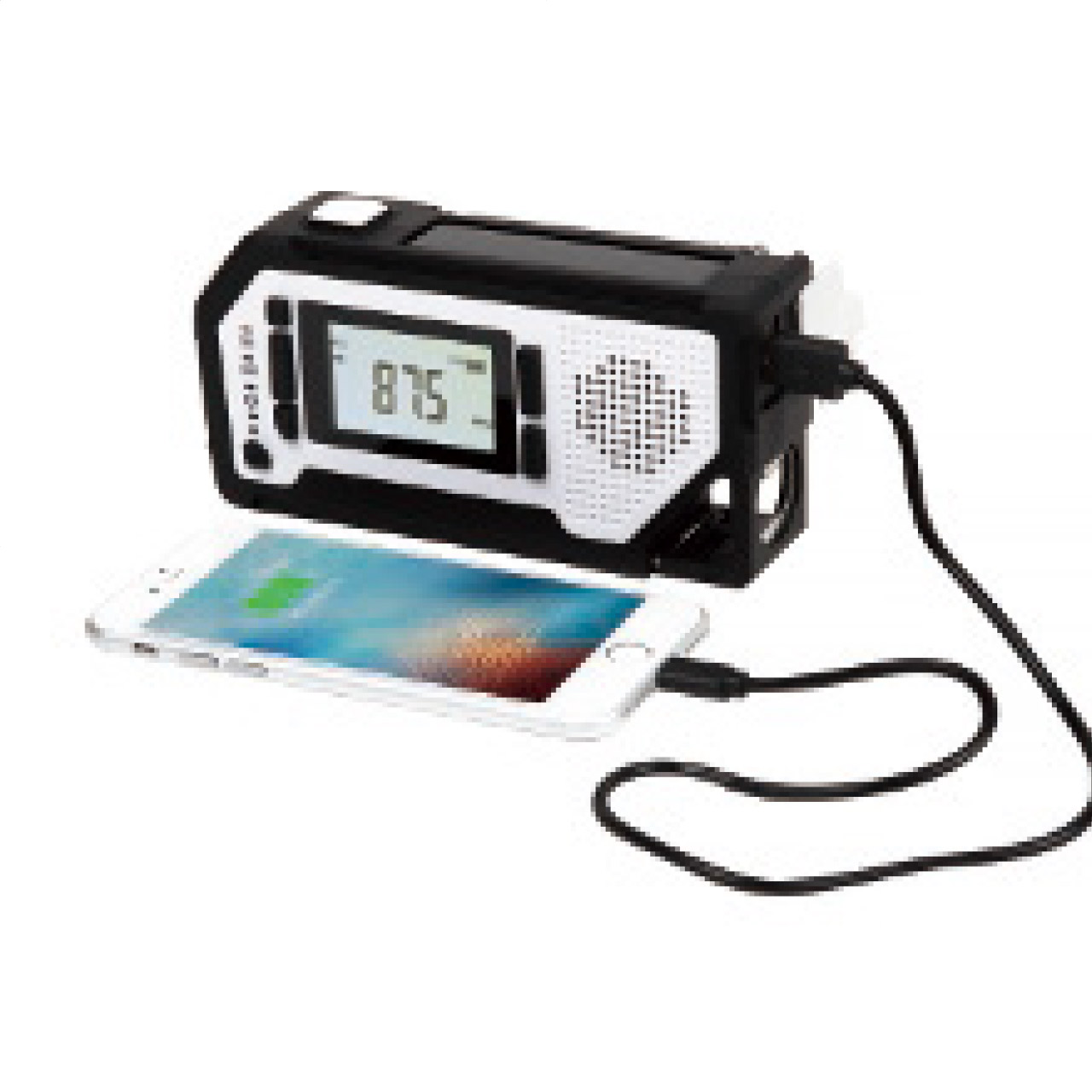 USB・手回し・ソーラー・乾電池の4WAY蓄電式で、イヤホンジャック、FM/AMラジオ、LED懐中電灯、SOSアラーム&ライト点滅、栓抜き、内蔵バッテリー2000mAh、充電機能と災害時に役立つこと間違いなしの防災ラジオライト。液晶ディスプレイで見やすく、ボタン操作で簡単。明るさ :約90lm