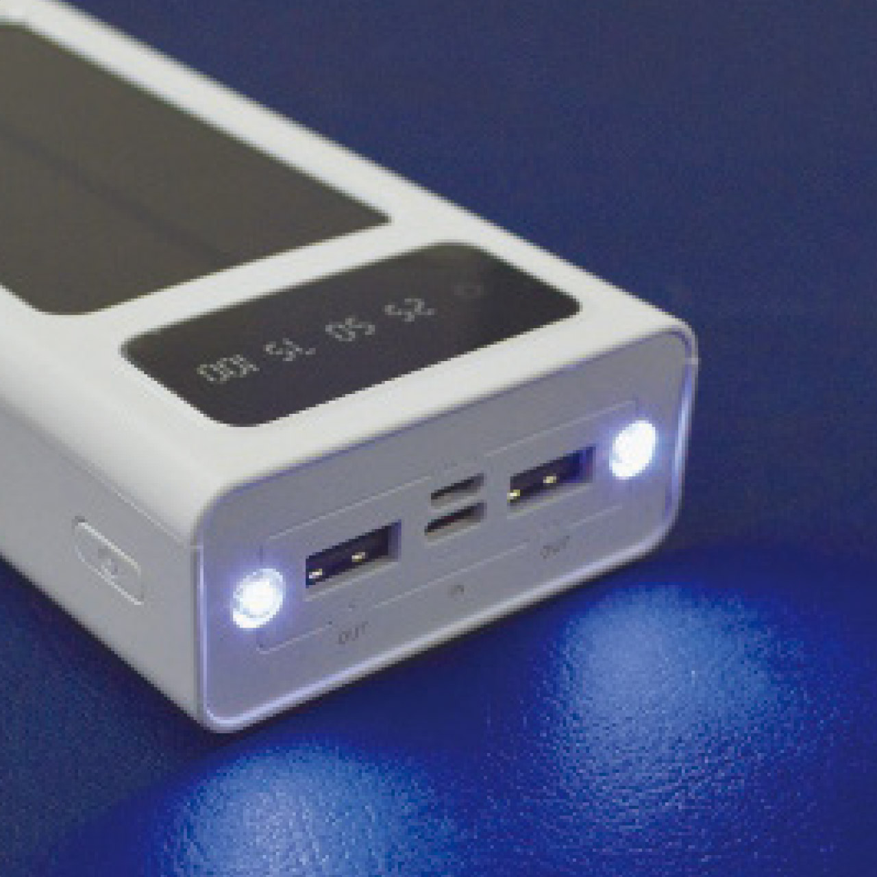 充電入出力ケーブル4本内蔵! 安全性の高いリチウムイオンポリマー電池採用大容量2万mAhだから最大5台同時でフル充電可能!●3本の内蔵充電出力ケーブルと2個のUSB出力を使えばiPhone、スマホに最大5台同時に充電可能かつ満充電出来ます●パワーバンクへのUSB入力充電ケーブルも内蔵、タイプC、マイクロUSB充電入力端子も装備●太陽光・照明でフル充電状態にしておけば、いつでもすぐ使えて便利●iPhone、スマホに約6回充電可能●USB充電の場合は4段階の電池残量インジケーター点滅で確認でき、フル充電で点灯●ソーラーパネル充電中は緑色のインジケーターで確認可能●非常時に便利な2灯式LEDライト付き(点灯 - 切)●電池残量は4種の残量数字で確認●安全保障温度:0度~40度 湿度:15%~80%